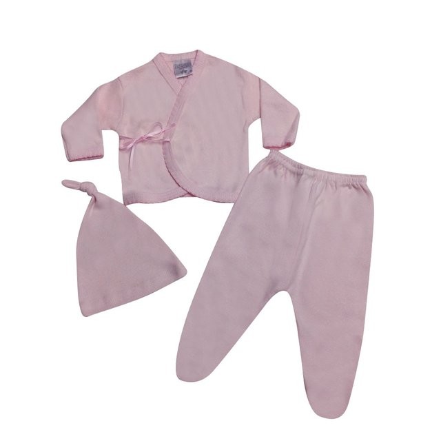 Set bebé/a 3 piezas: batita c/cinta + medio osito + gorro. En bolsita de tul.