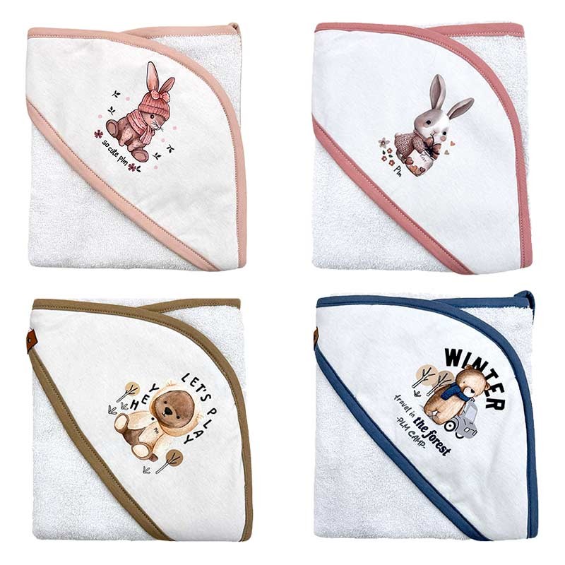 Toallón c/capucha y estampa. Medidas: 70 x 75 cm.