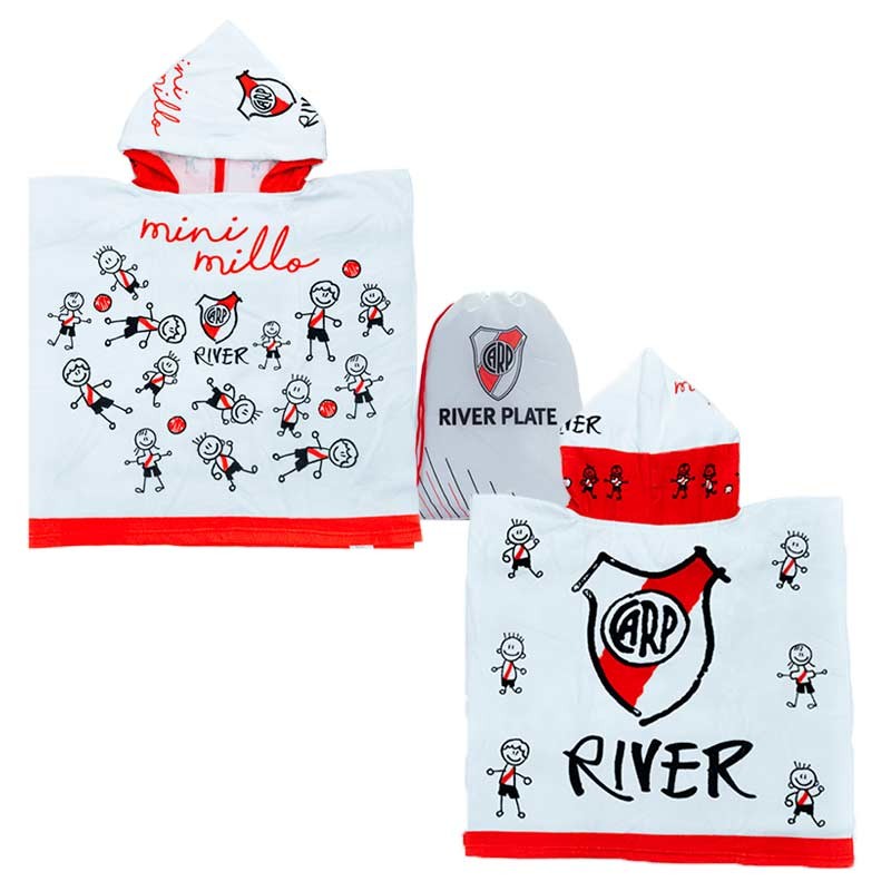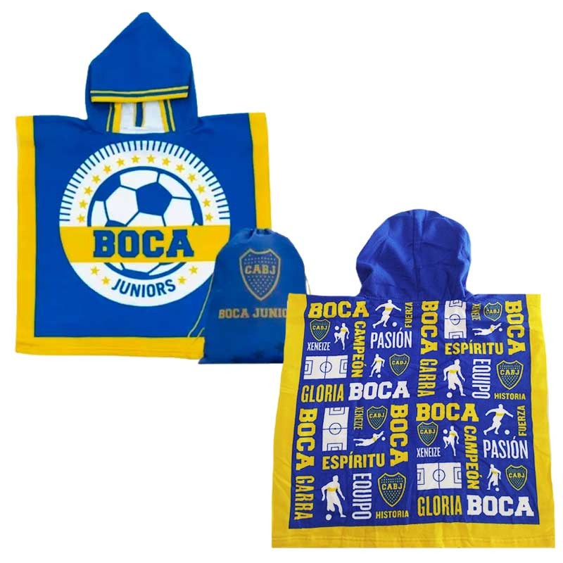 Poncho toalla futbol c/capucha, dibujo en frente, espalda y mochila.