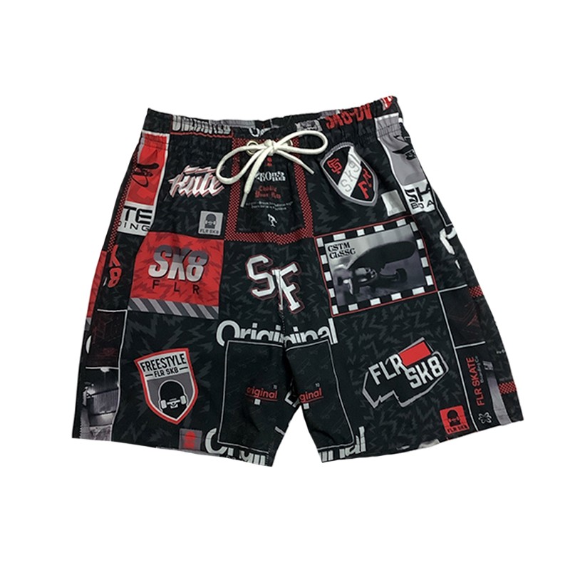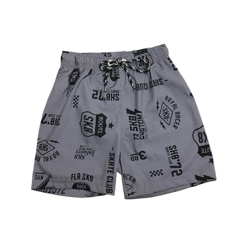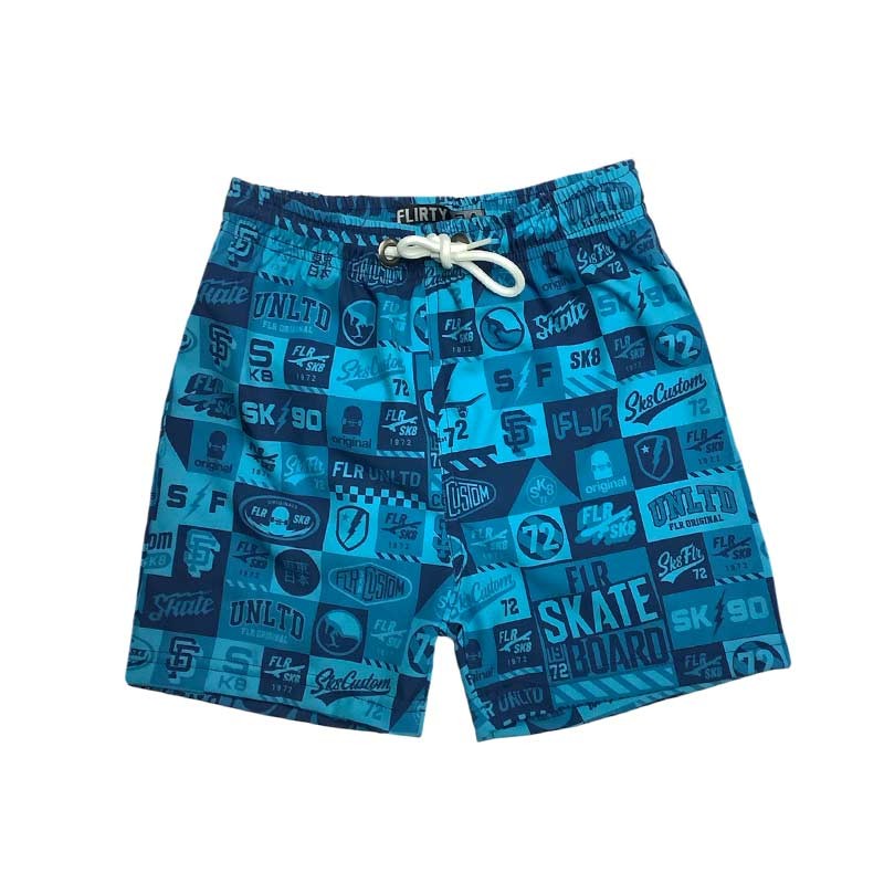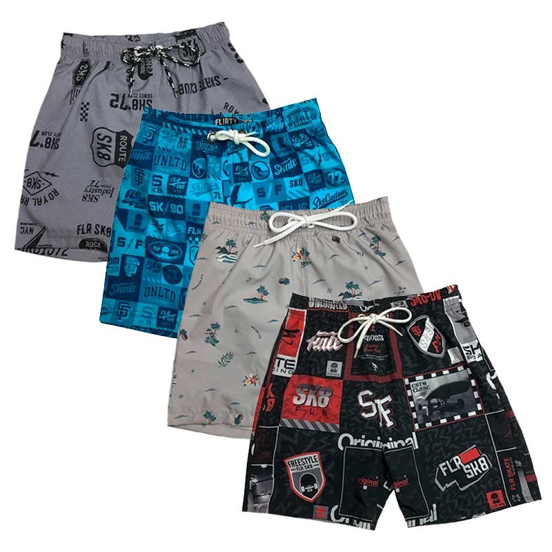 Bermuda de baño niño c/suspensor estampado, cordón y bolsillo trasero.