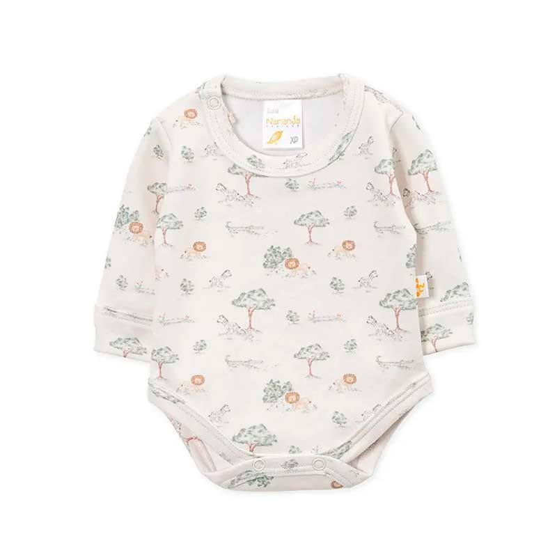 Body m/l con broches prematuros. ESTAMPADO AFRICA / GLOBO AEROSTATICO / ANIMALES