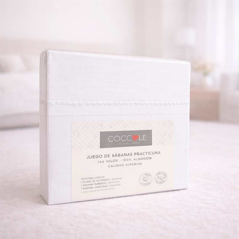 Juego de sabanas para cuna, confeccionado 100% algodon 144 hilos con tratamiento extra de suavidad y embozo bordado