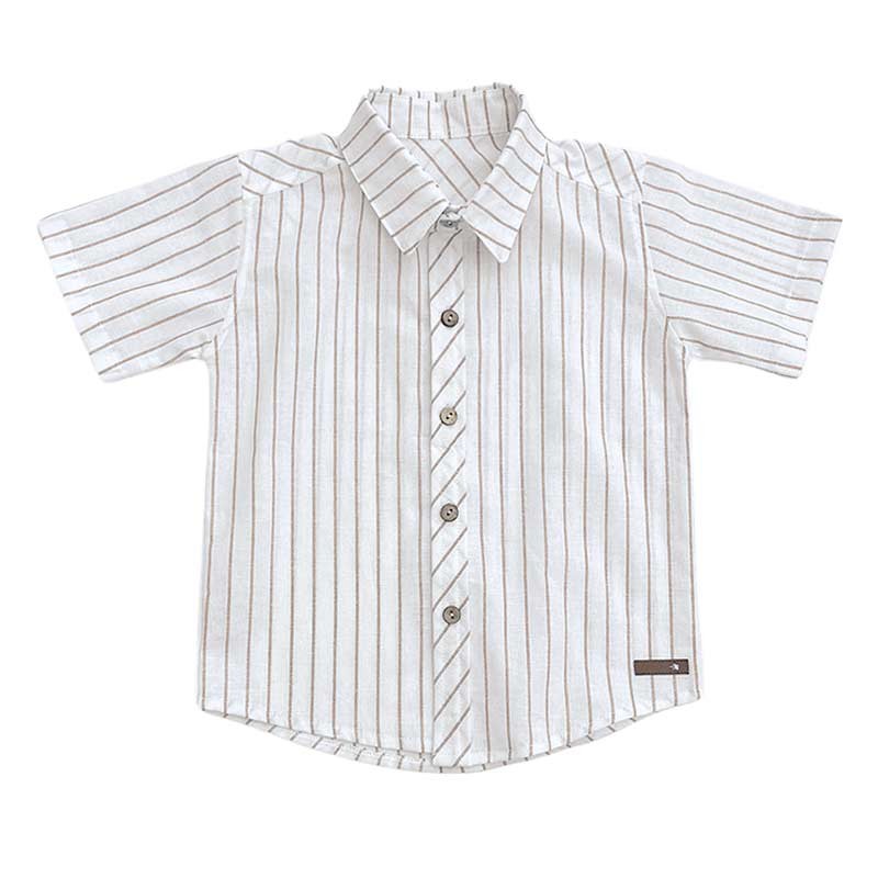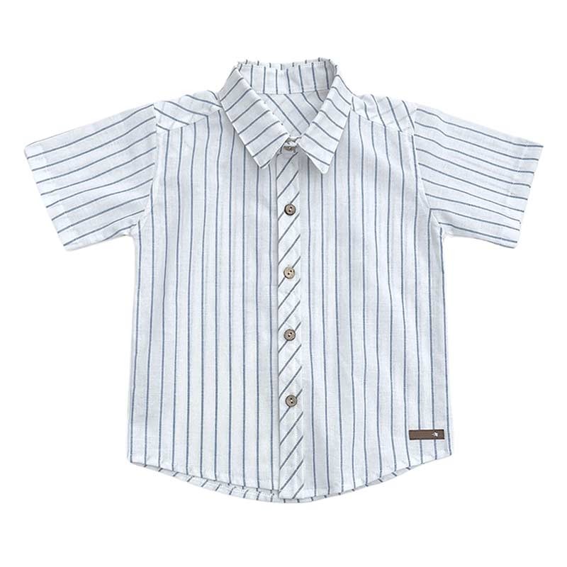 Camisa bebé m/cortas lino rayada.