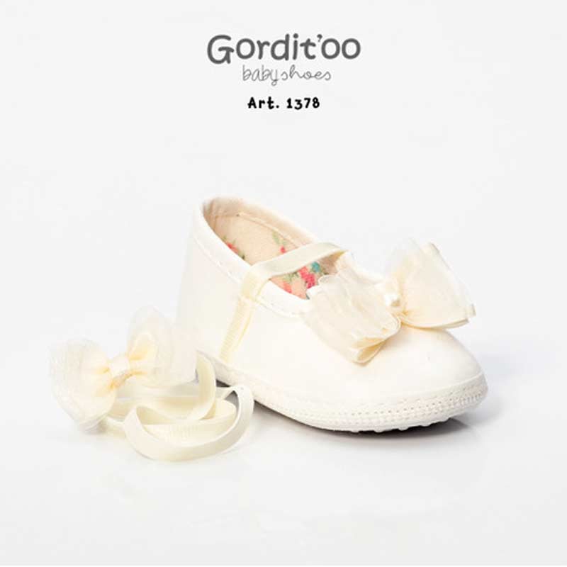 Balerina beba pima natural, con detalle moño doble y vincha.