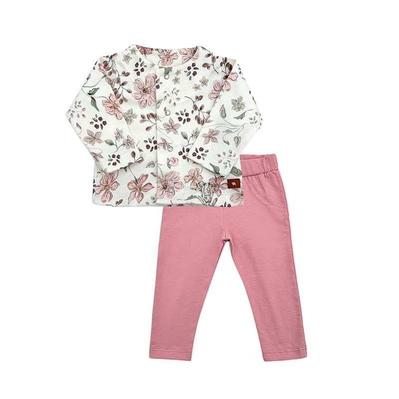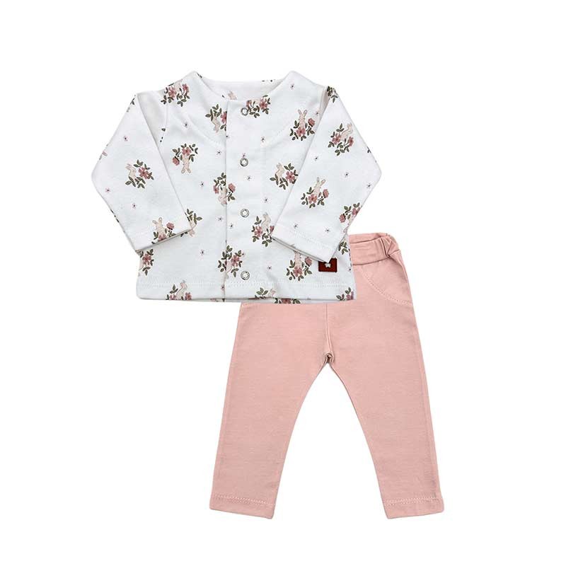 Conjunto beba 2 piezas algodón: saquito estampado + pantalón liso.