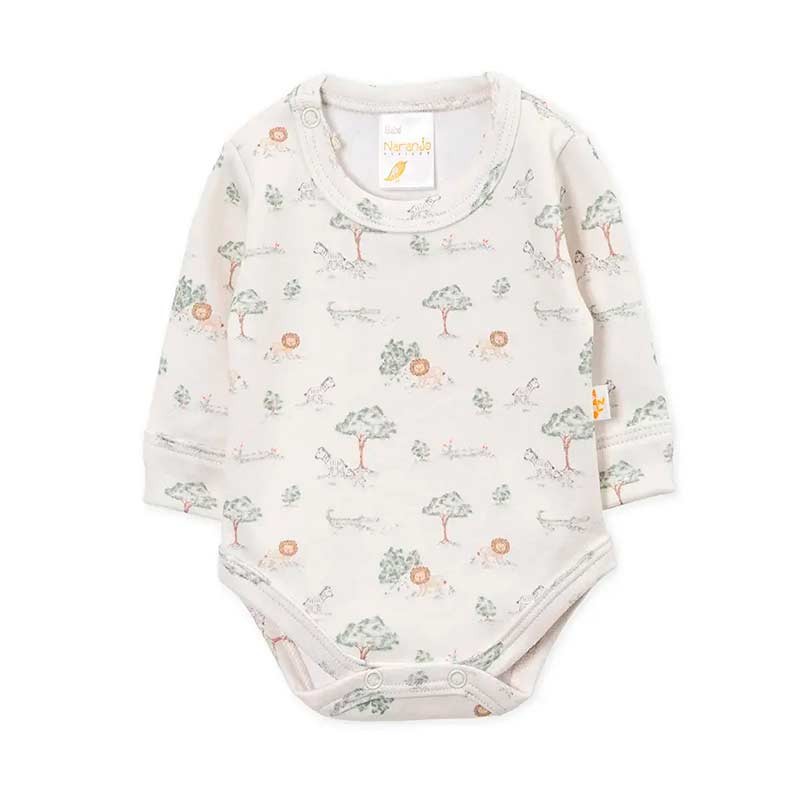 Body bebé/a m/largas algodón, con broches. ESTAMPADO AFRICA / GLOBO AEROSTATICO / ANIMALES