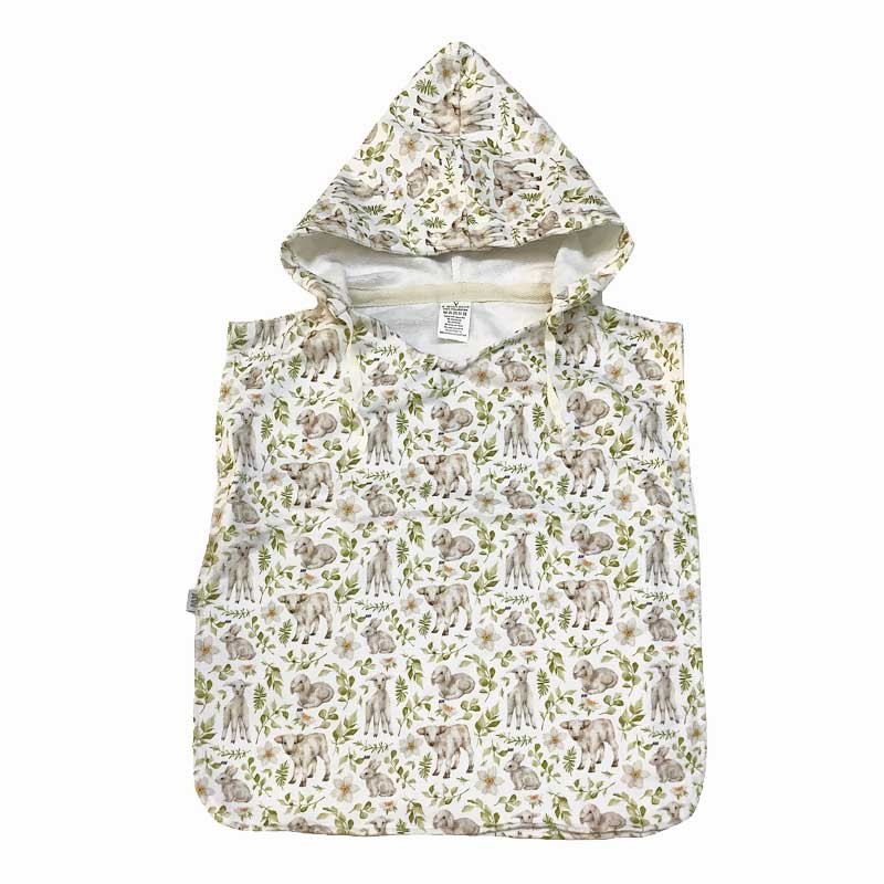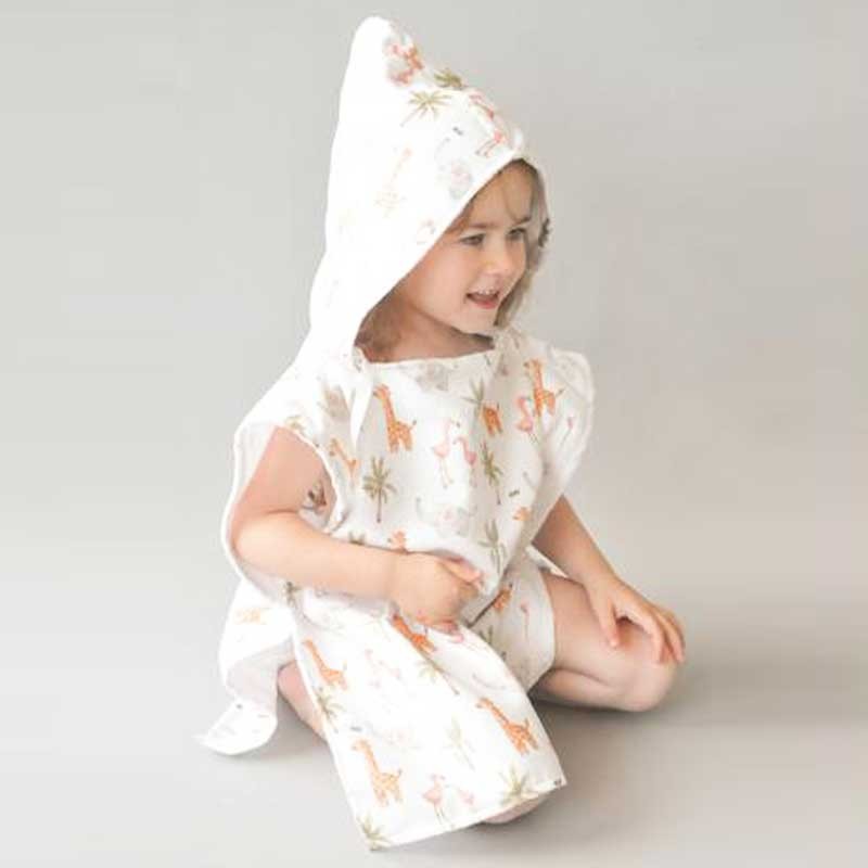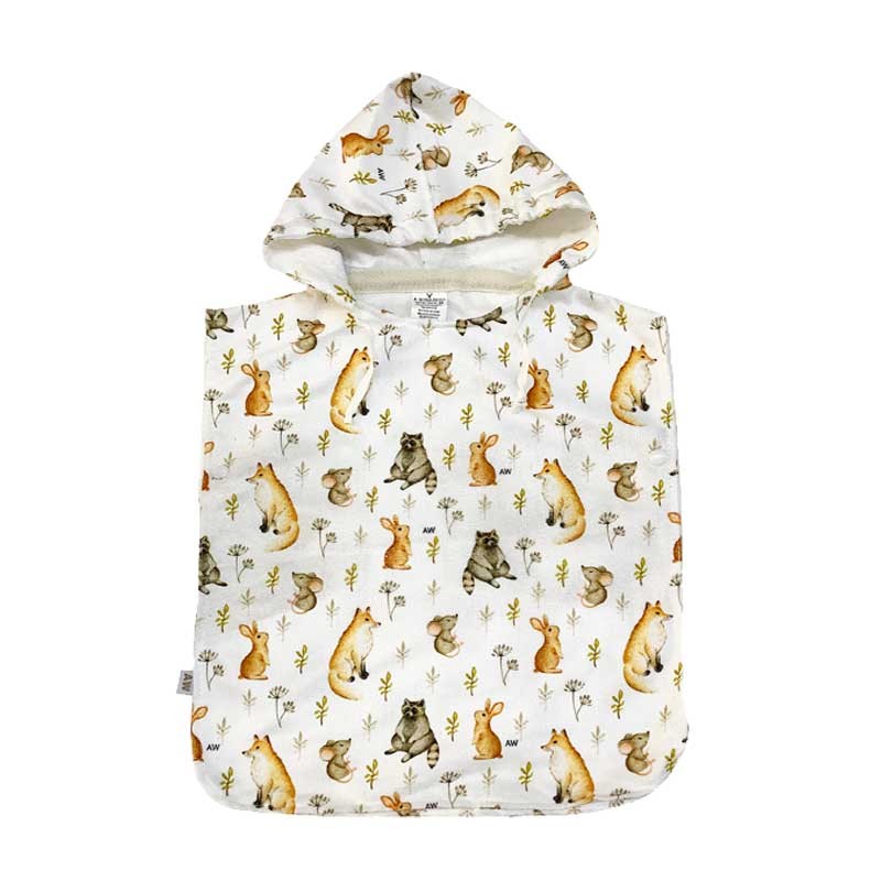Poncho bebé/a microfibra secado rápido, con capucha regulable y broches a los costados.