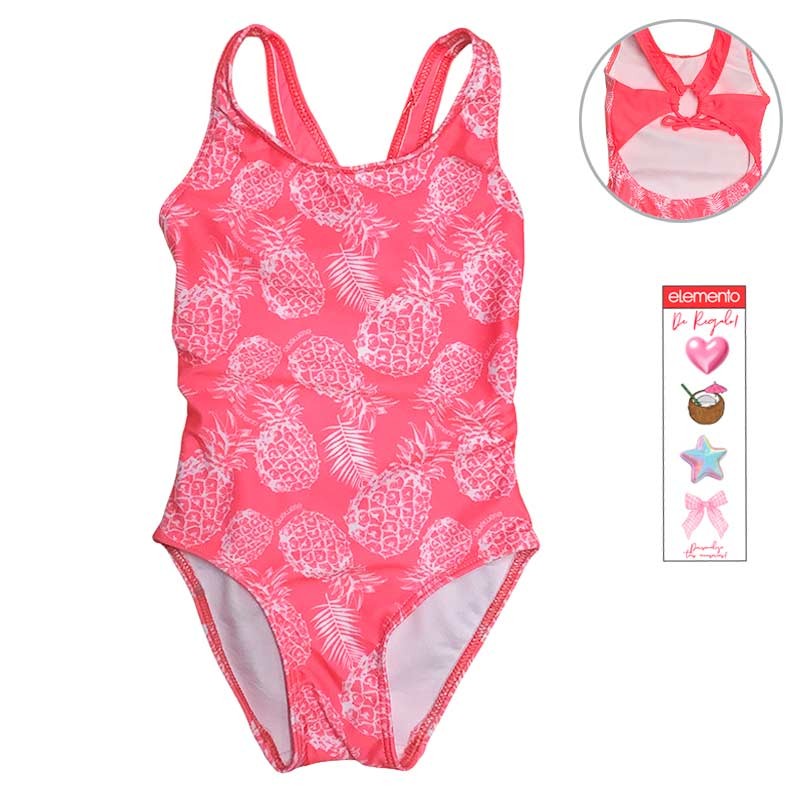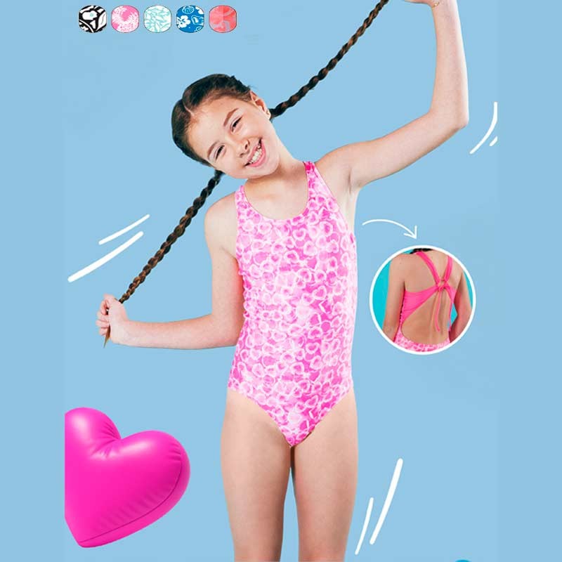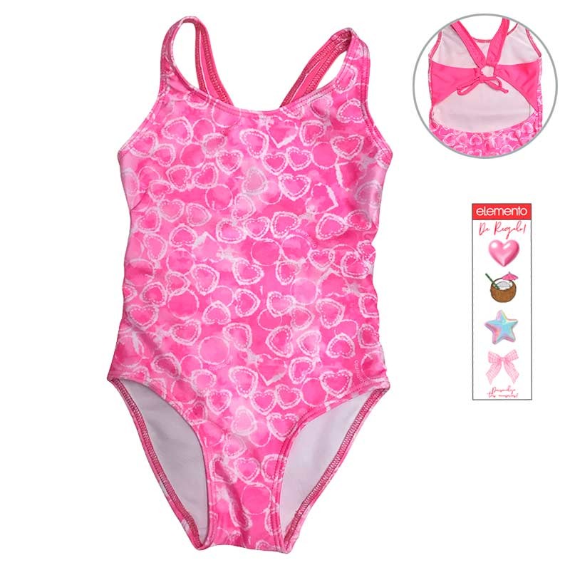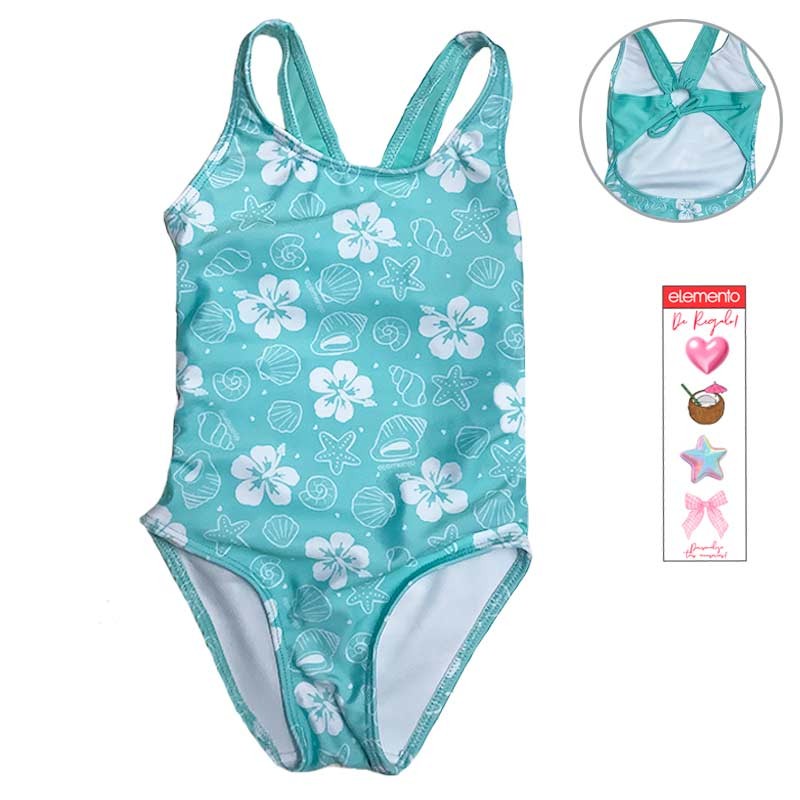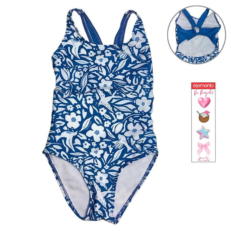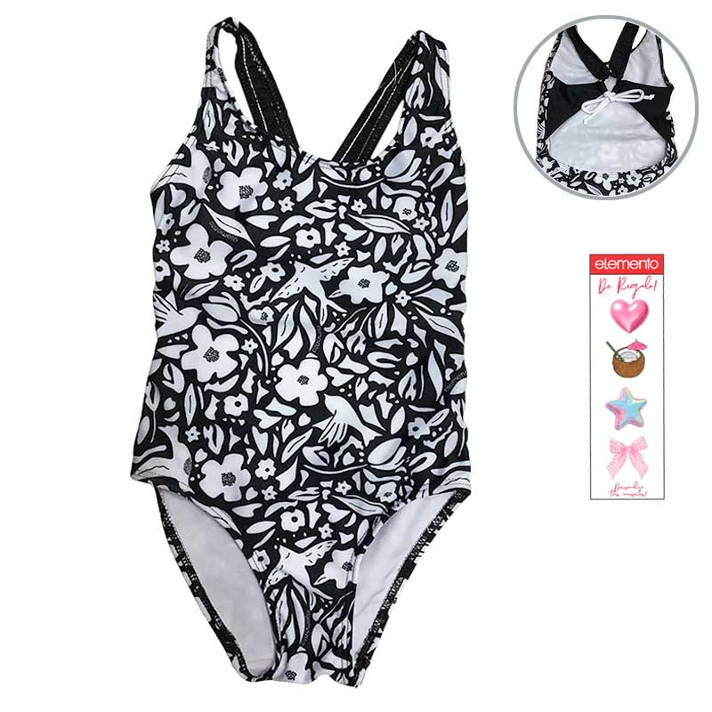 Malla enteriza niña tricot estampado con breteles lisos, para atar en espalda.