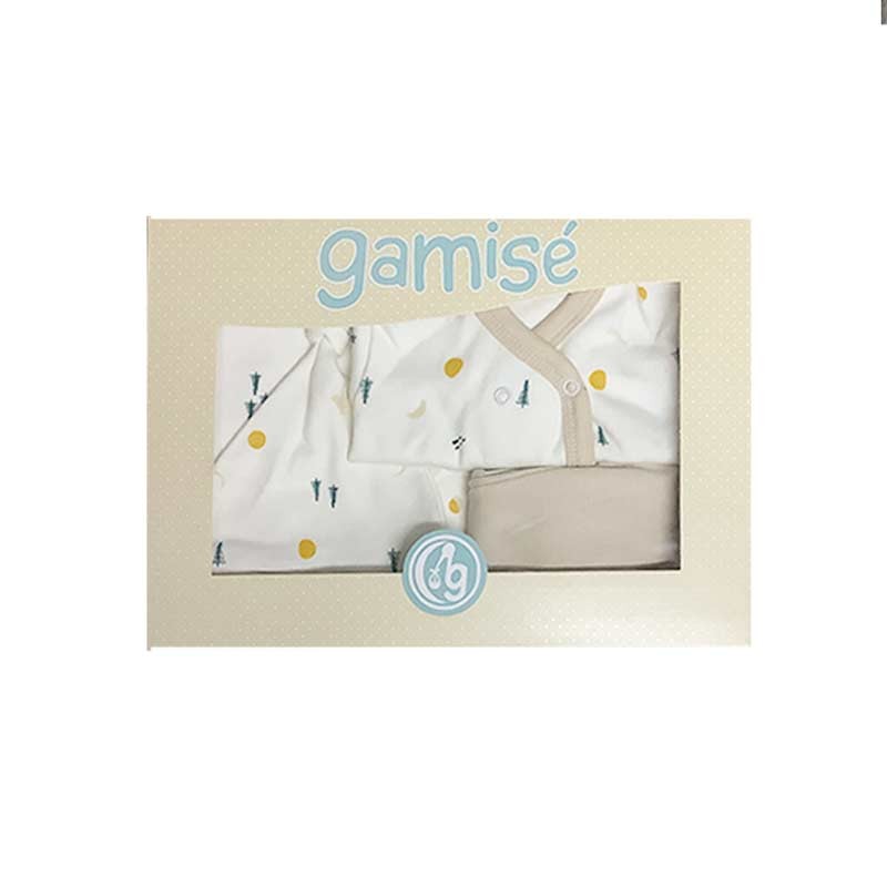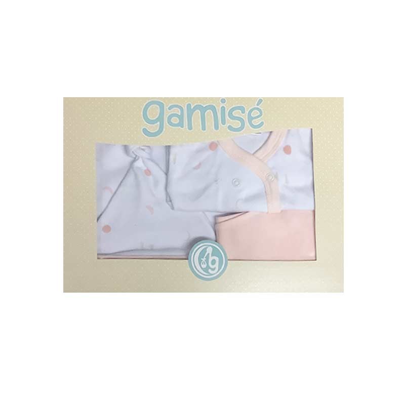 Set ajuar en caja 4 piezas: mantilla, gorrito, batita m/l, medio osito. LÍNEA REGALO