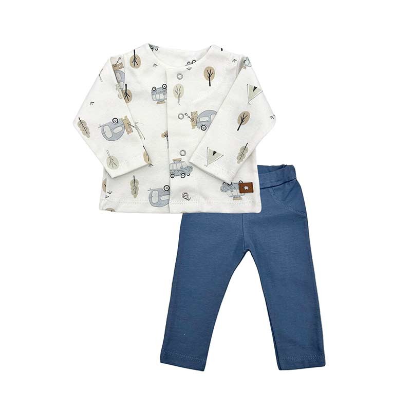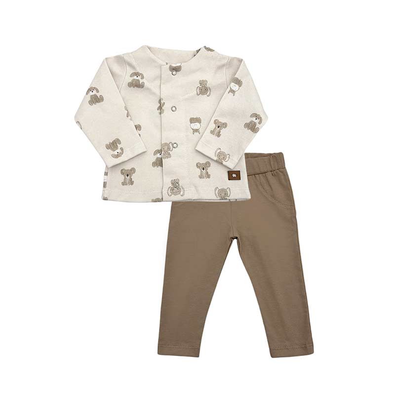 Conjunto bebé 2 piezas algodón: saquito estampado + pantalón liso.