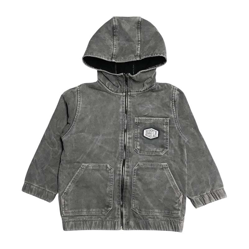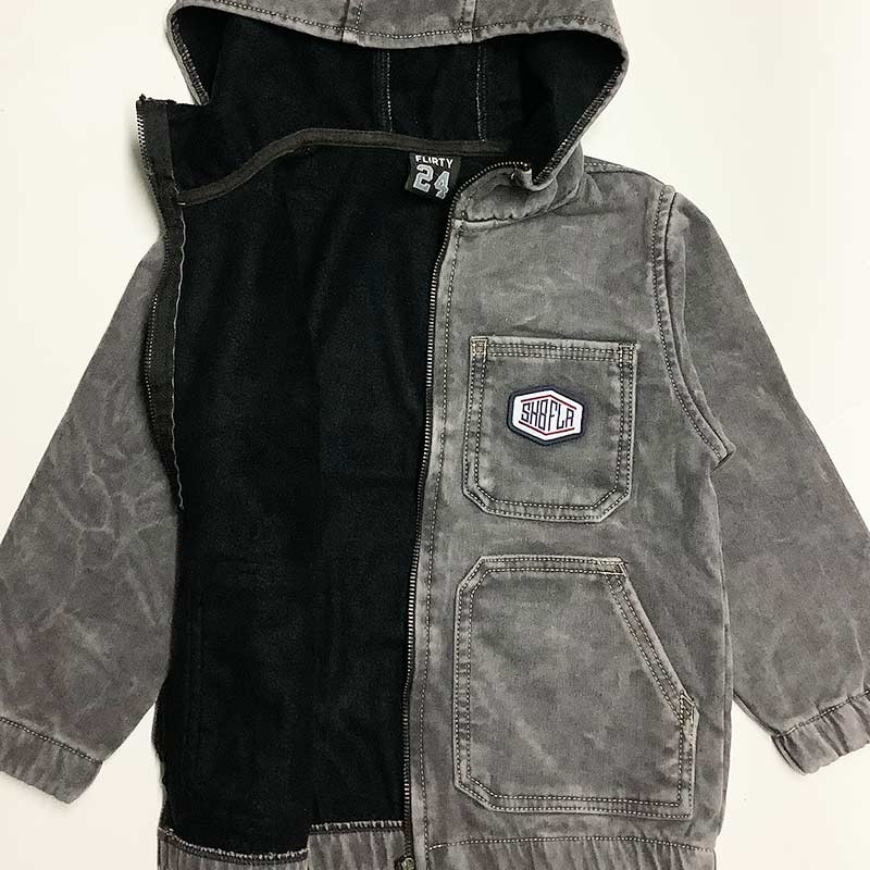 Campera niño jean nevado con bolsillos y capucha, con polar en su interior.