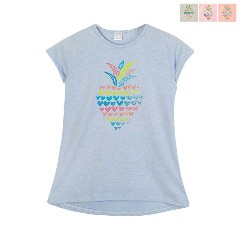 Remera niña jersey m/cortas. ESTAMPA ANANÁ CORAZÓN