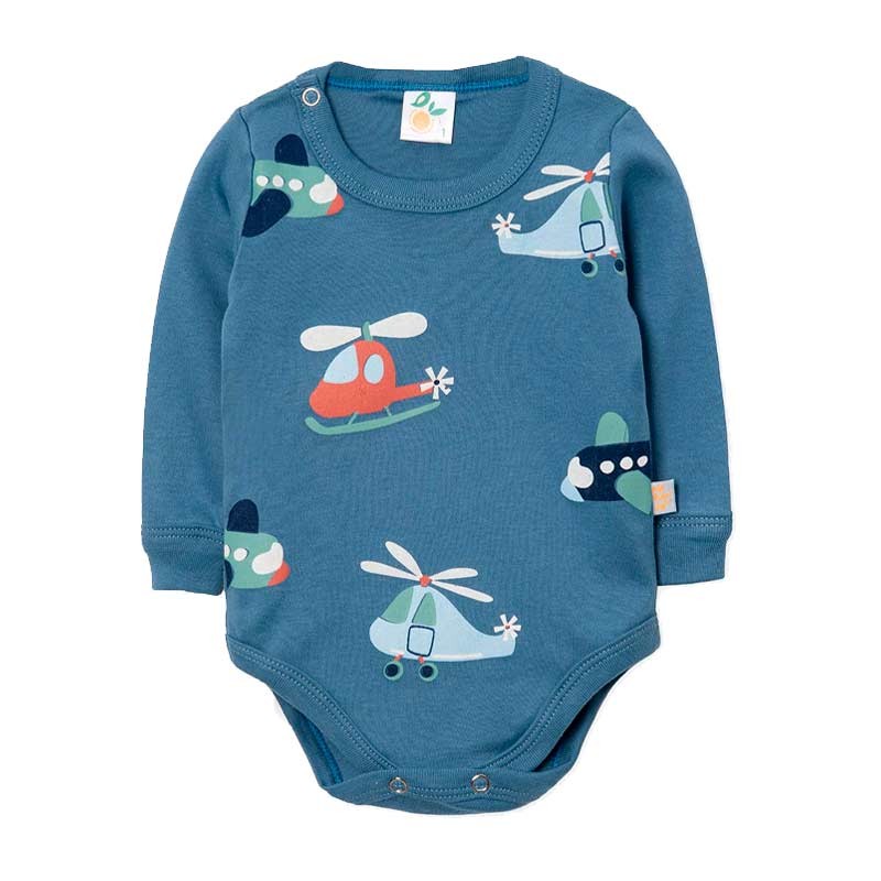 Body bebé m/largas, con broches. ESTAMPADO HELICÓPTEROS