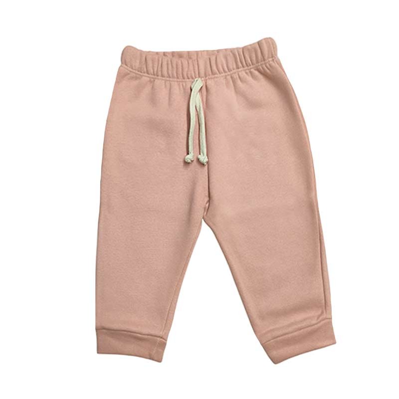 Pantalón bebé/a liso con puño, cordón y bolsillo trasero.