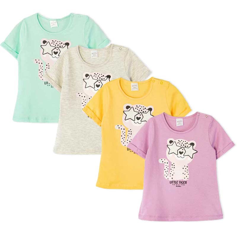 Remera beba jersey m/cortas, con broches. ESTAMPA TIGRE ANTEOJOS CON GLITTER