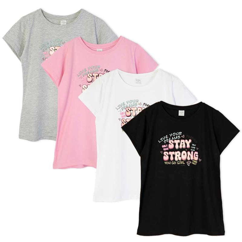 Remera niña jersey m/cortas. ESTAMPA STAY STRONG CON HI GLOSS