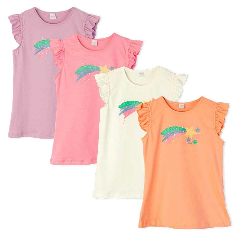 Musculosa niña jersey, con voladitos. ESTAMPA ESTRELLA FUGAZ CON GLITTER