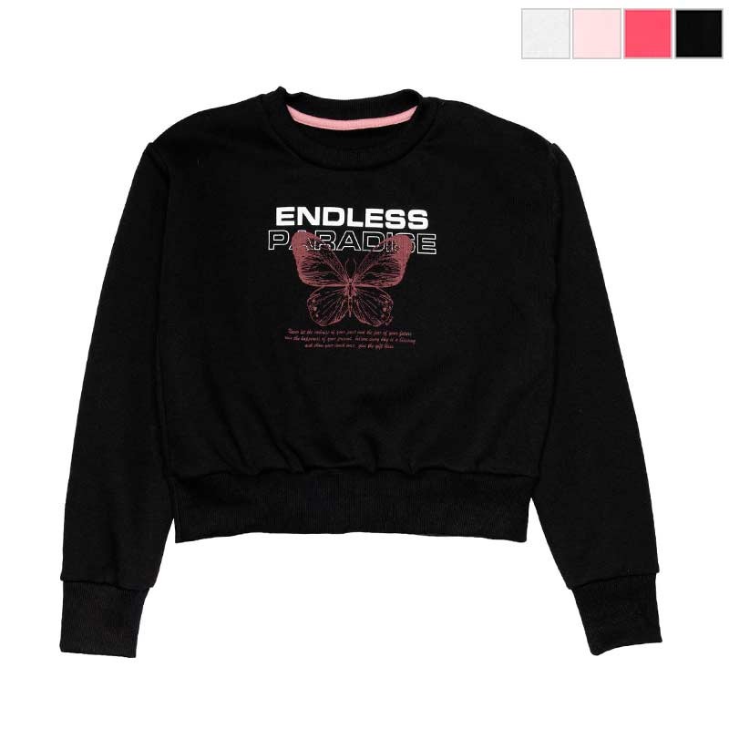 Buzo corto niña frisa. ESTAMPA MARIPOSA PARADISE