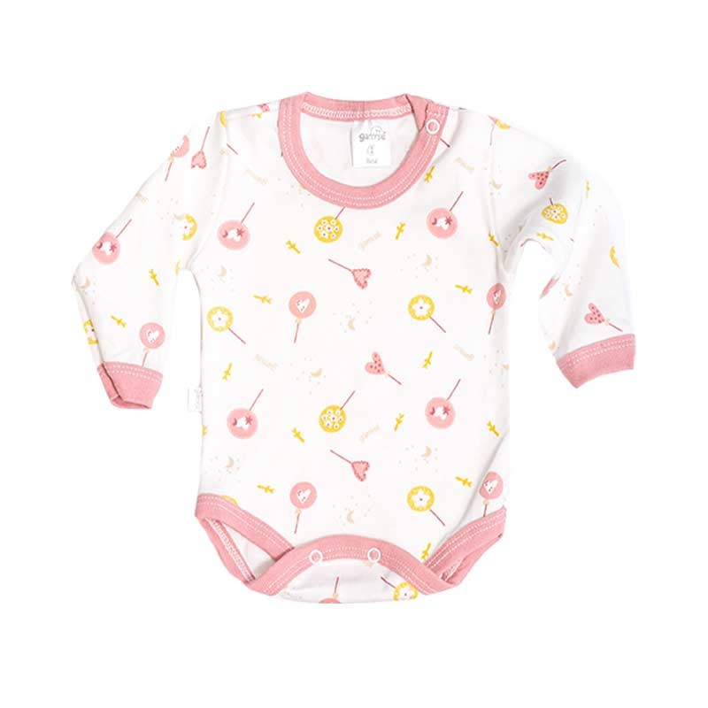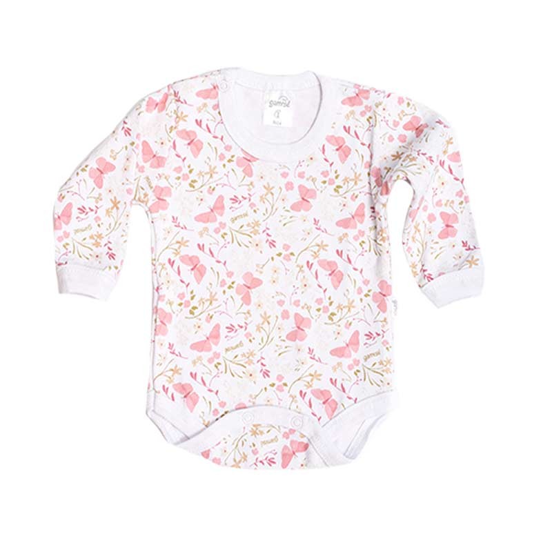 Body beba m/largas, con broches. LÍNEA INTERIOR: FLORES