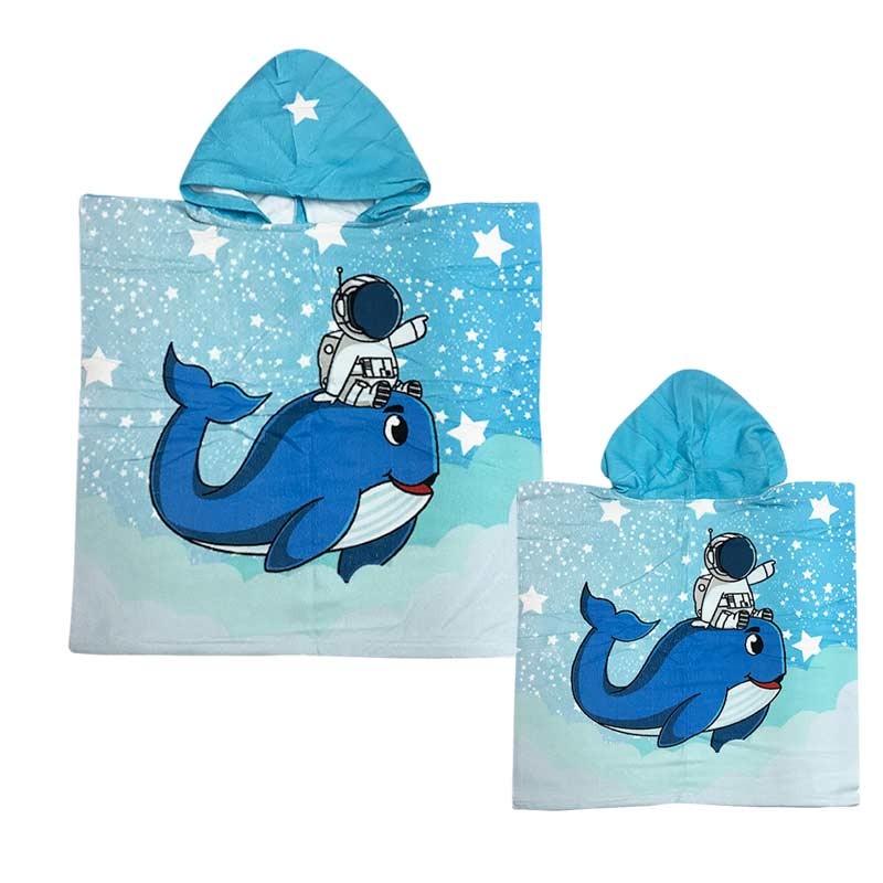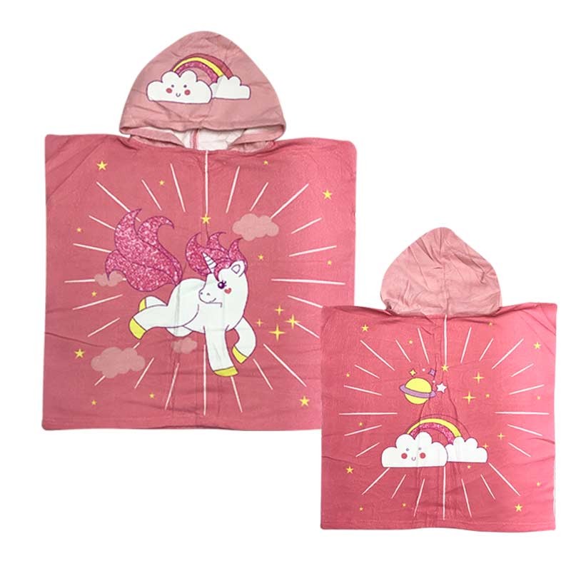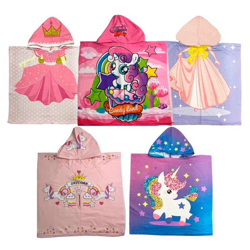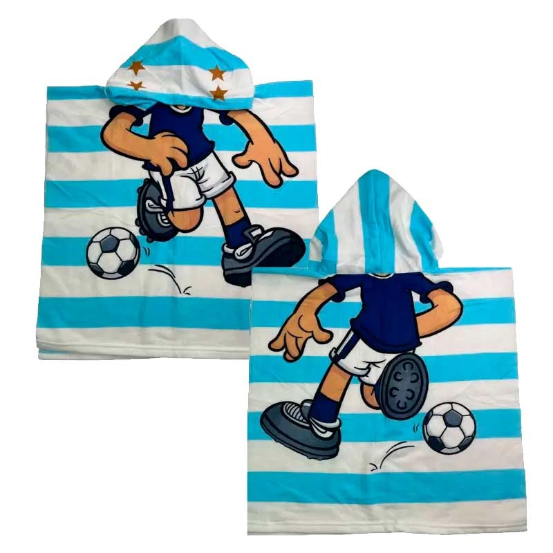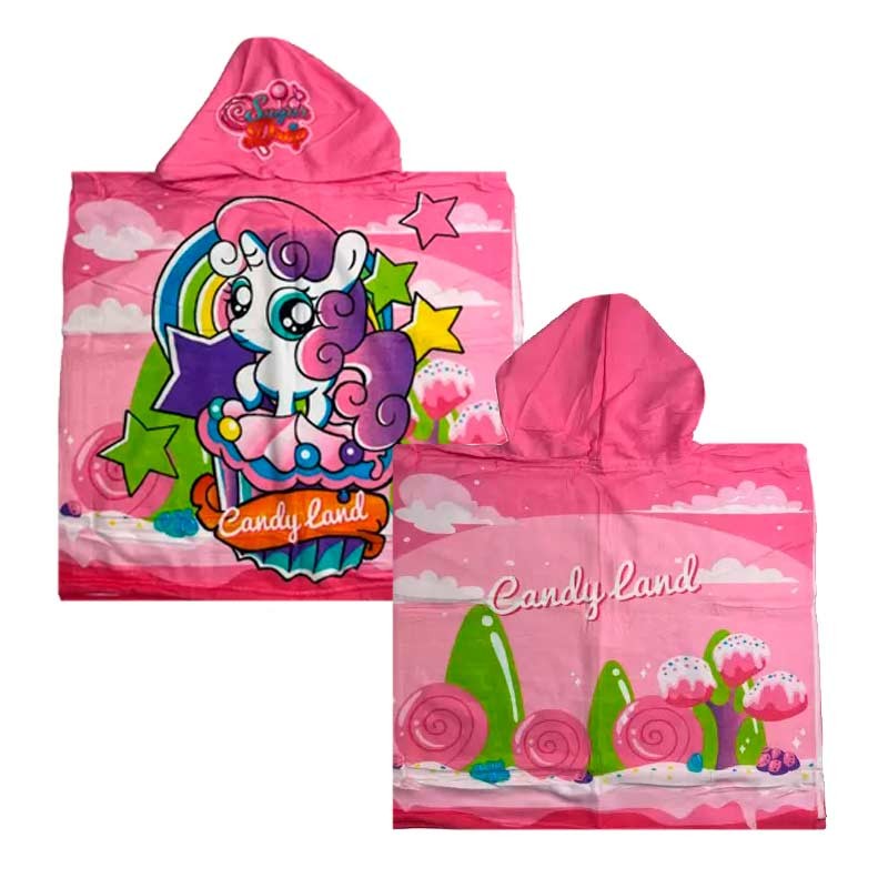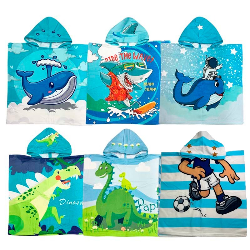 Poncho toalla infantil microfibra c/capucha, dibujo en frente y espalda.