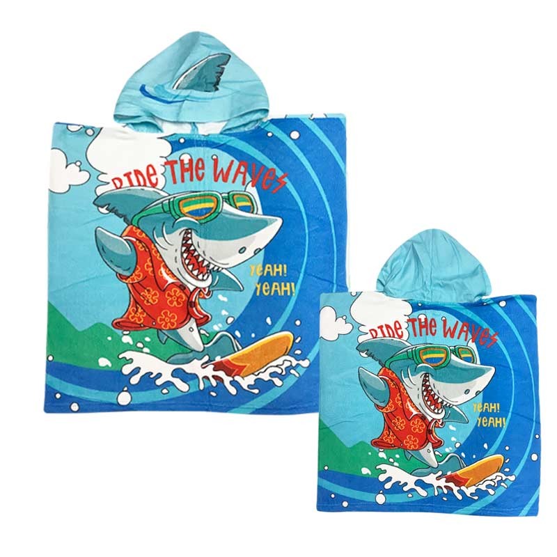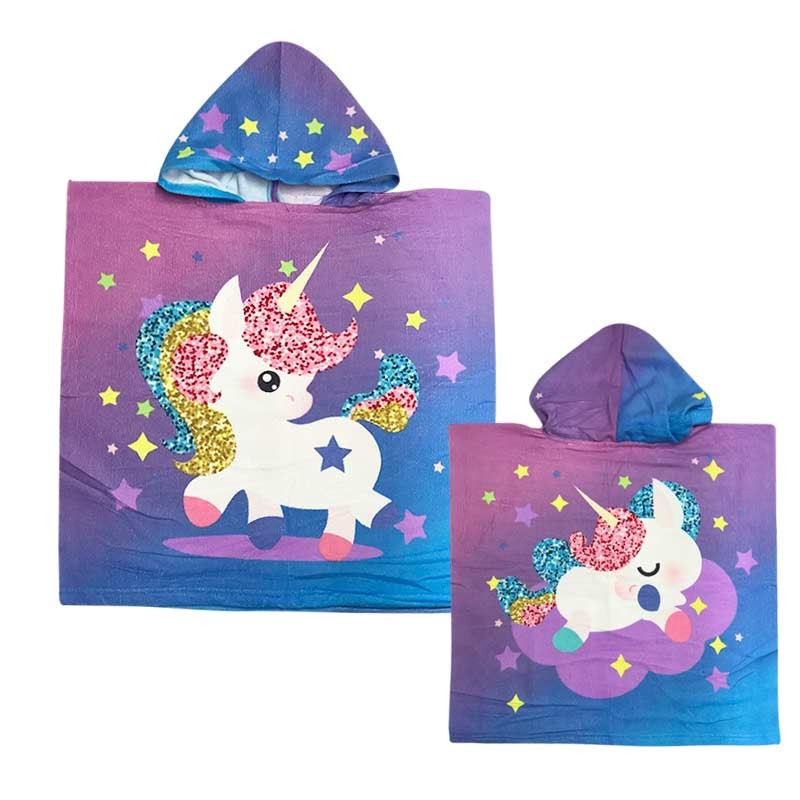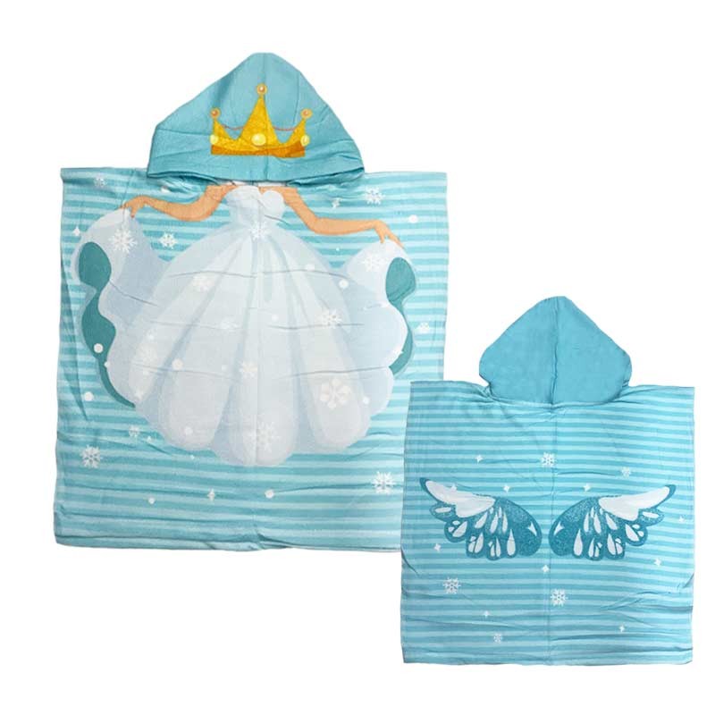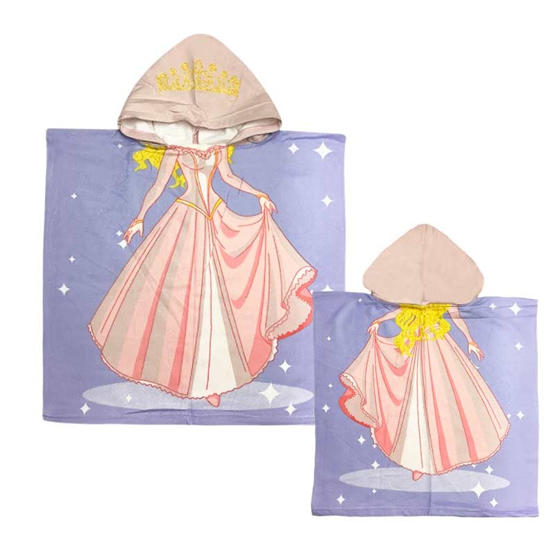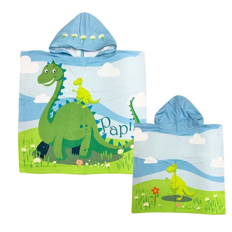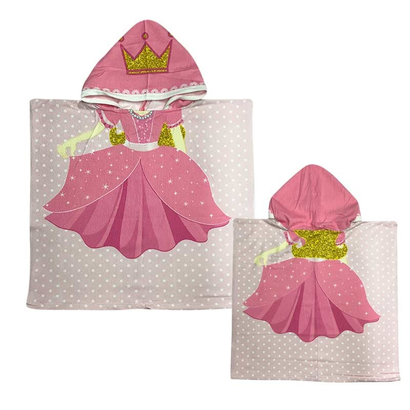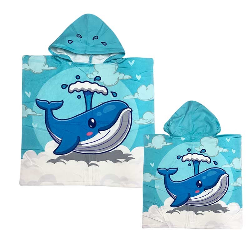 Poncho toalla infantil microfibra c/capucha, dibujo en frente y espalda.