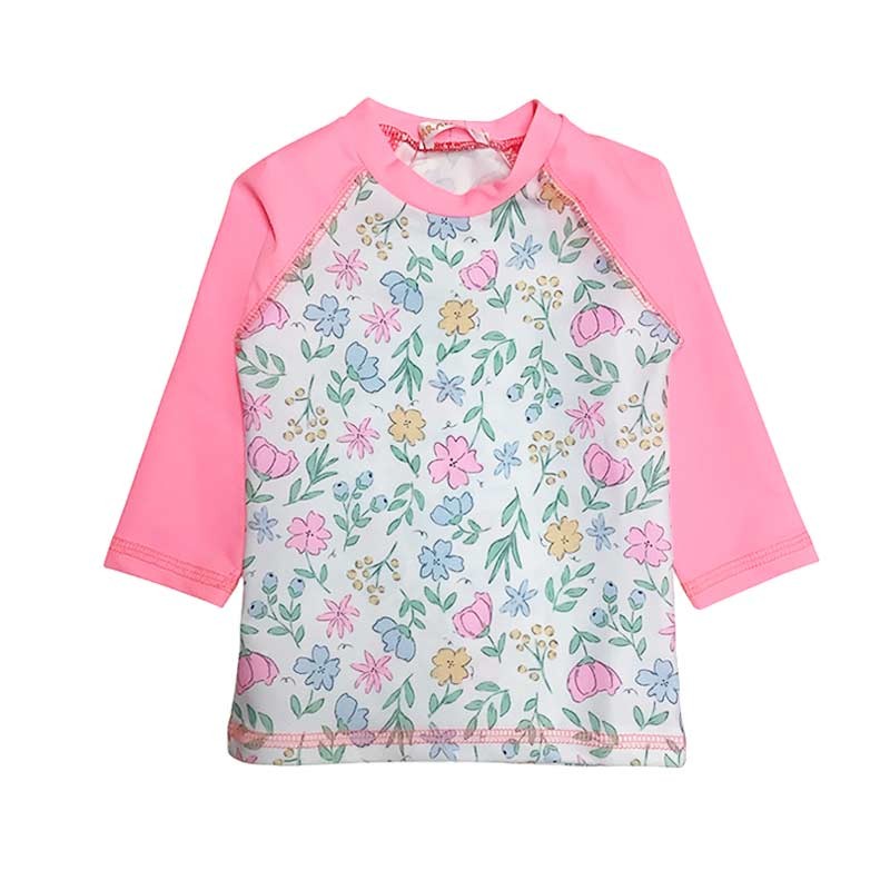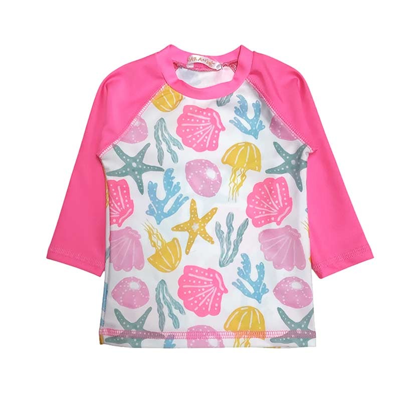 Remera beba estampada, m/largas lisas. Tela con protección UV.