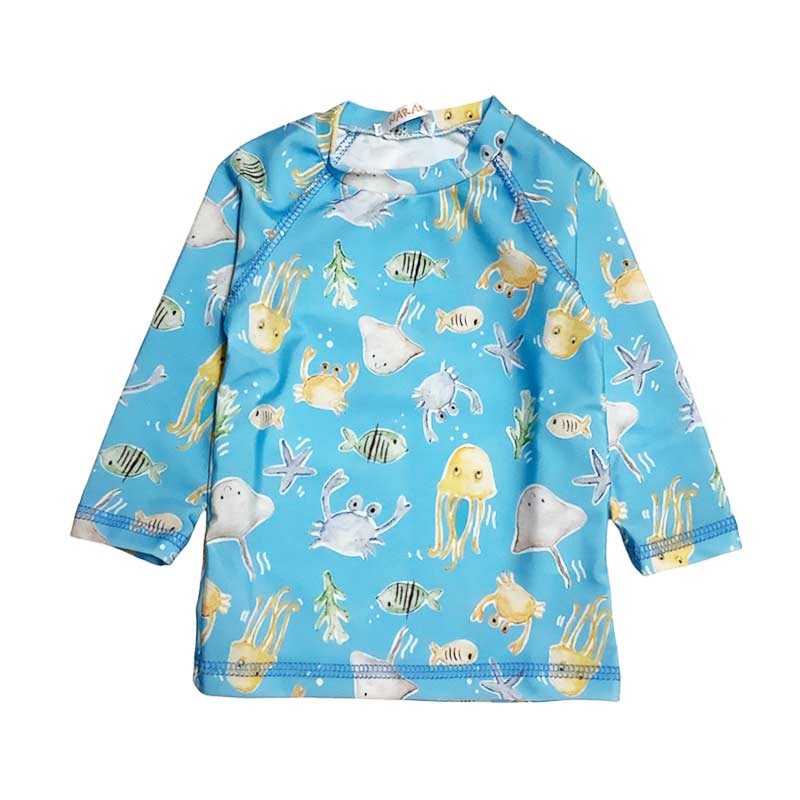 Remera bebé m/largas full estampada. Tela con protección UV.
