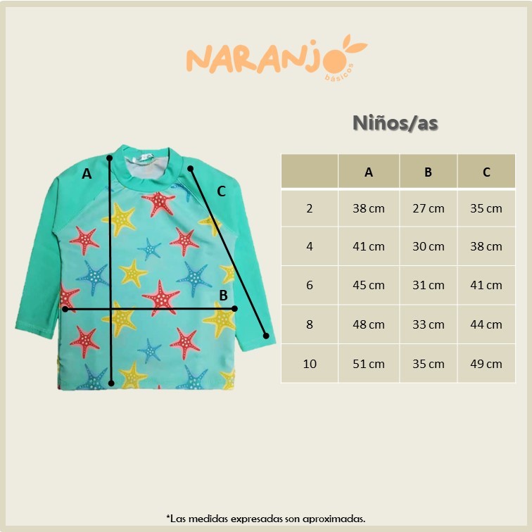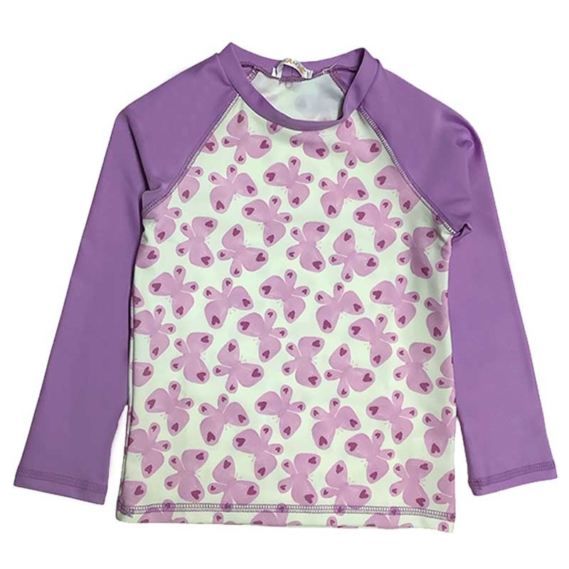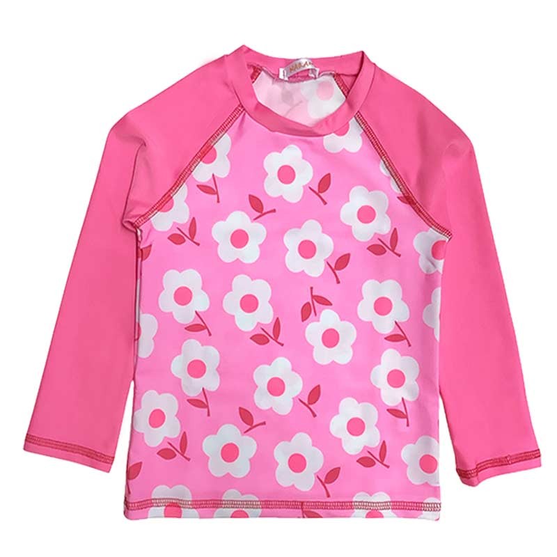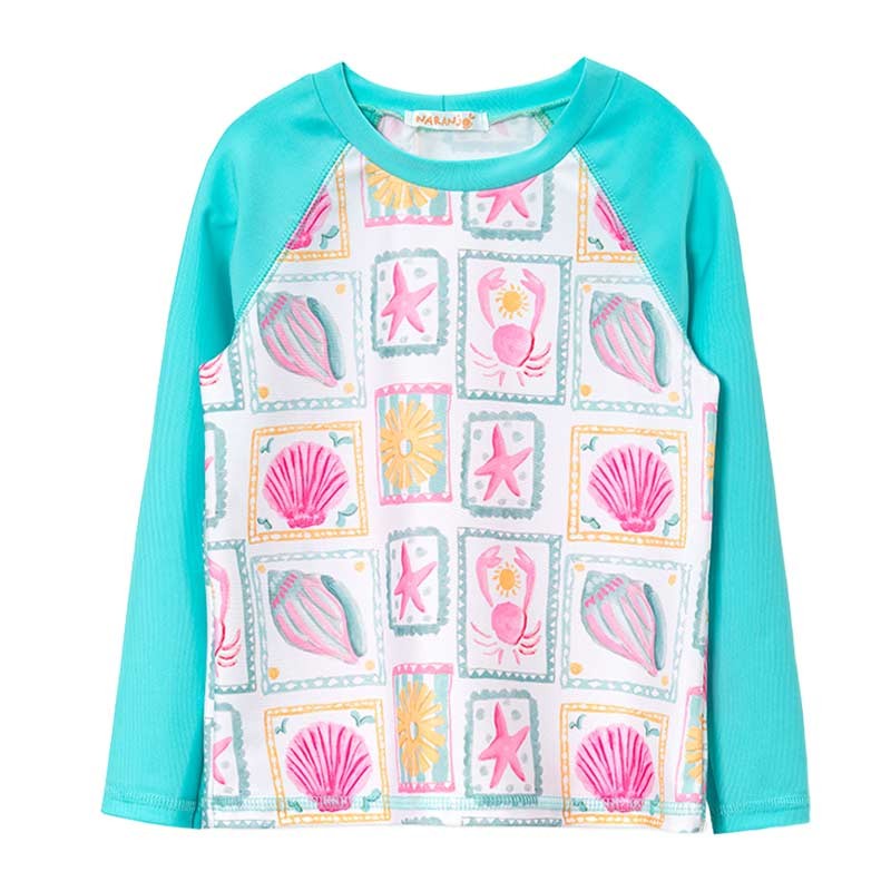 Remera niña estampada, m/largas lisas. Tela con protección UV.