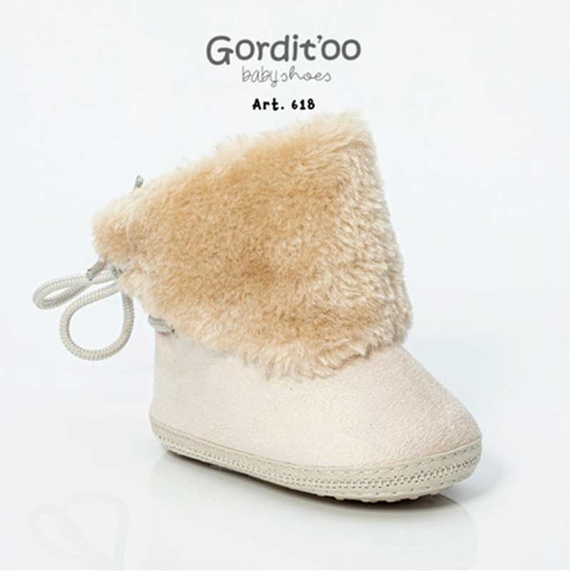 Bota beba media caña microfibra beige, con piel.