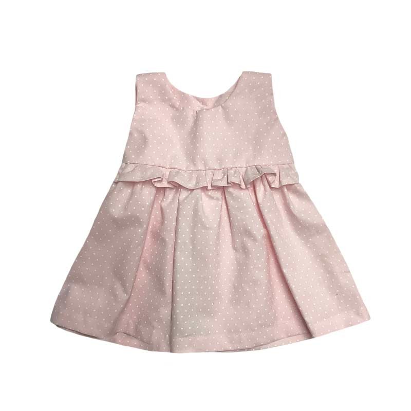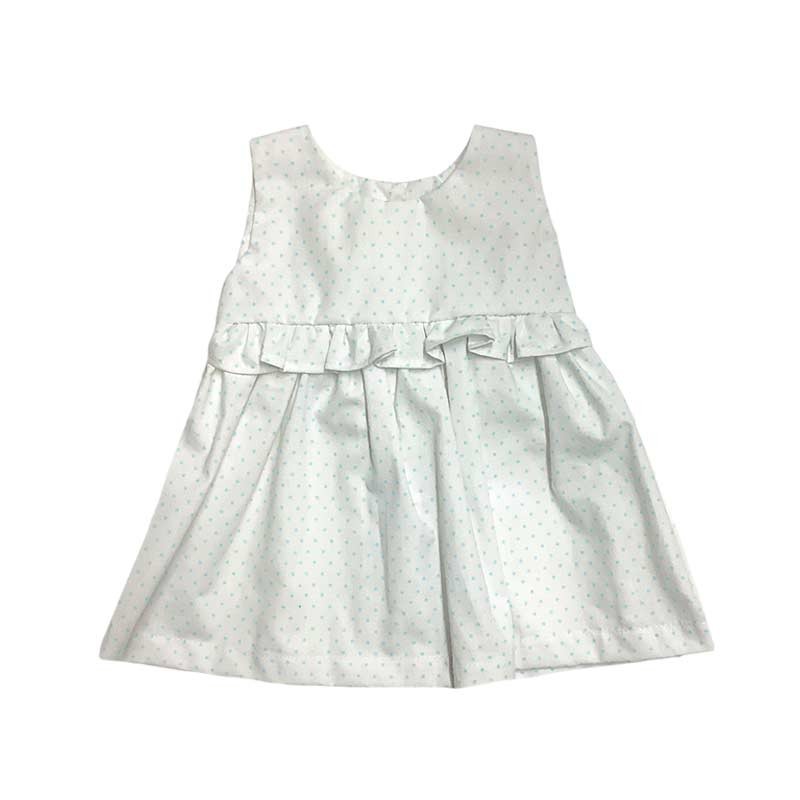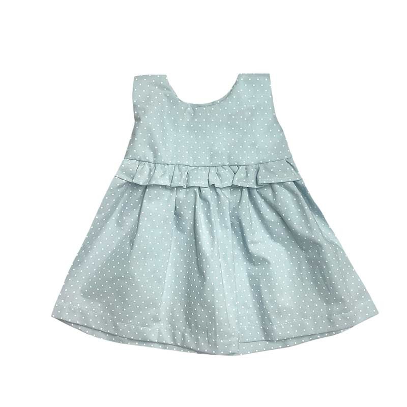 Vestido mini beba lunares, con volado en sisa, botones en espalda y lazo.