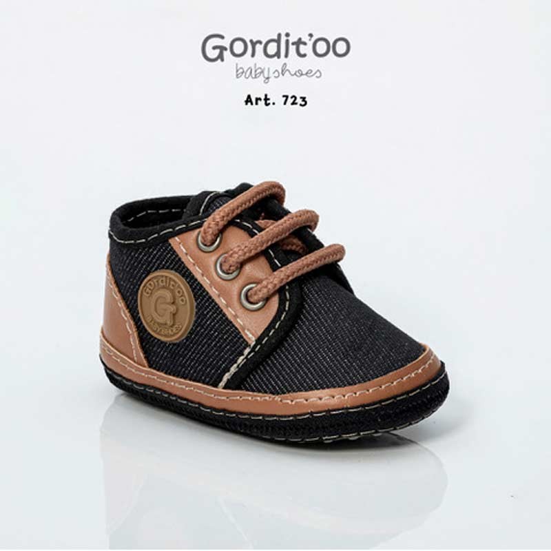 Zapatilla jean negro, con banda cordonera y detalle suela.
