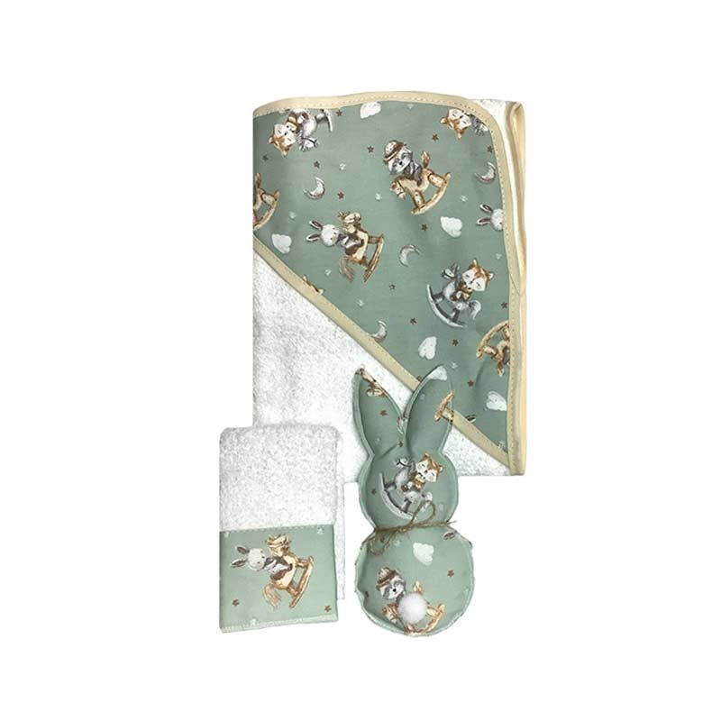 Set de nacimiento por 3 tusor estampado.