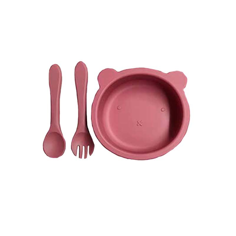 Set de alimentacion para bebés: tazon de succión forma osito, tenedor y cuchara.
