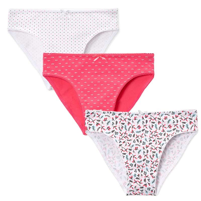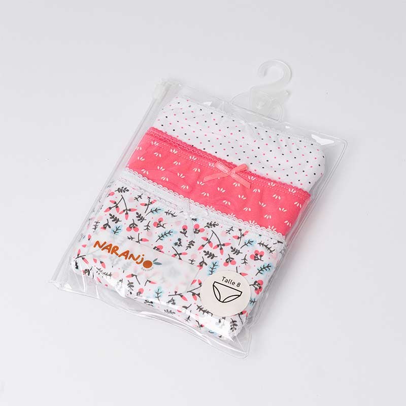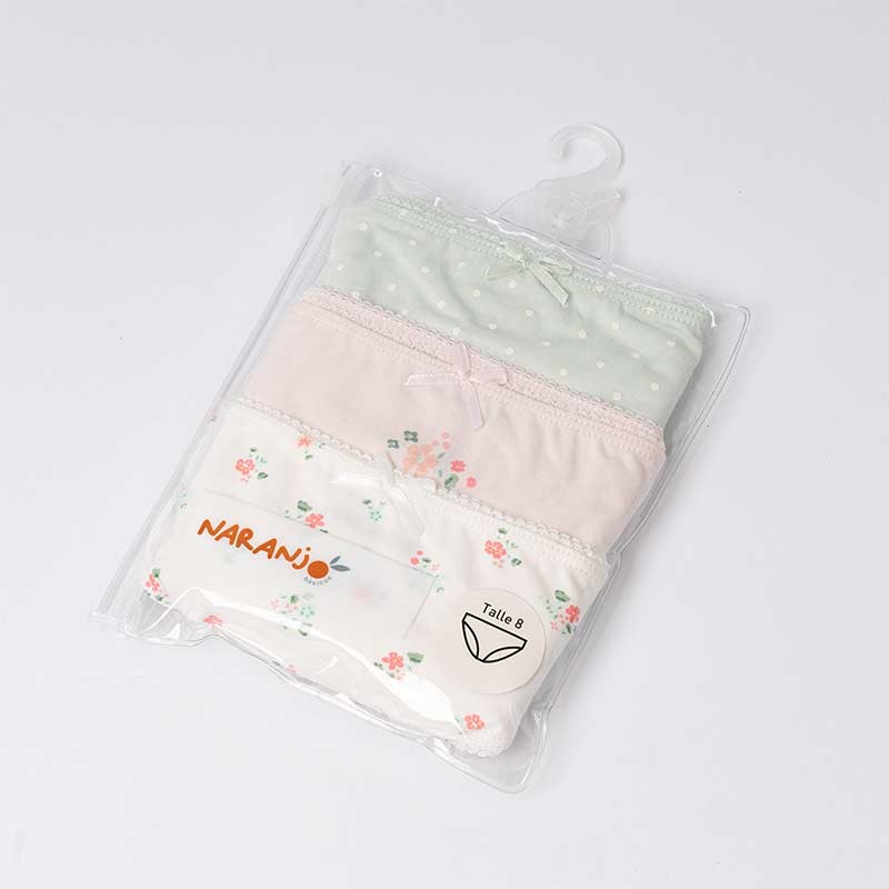Set 3 bombachas nena de algodón suave y respirable terminaciones con puntilla y moñito.
