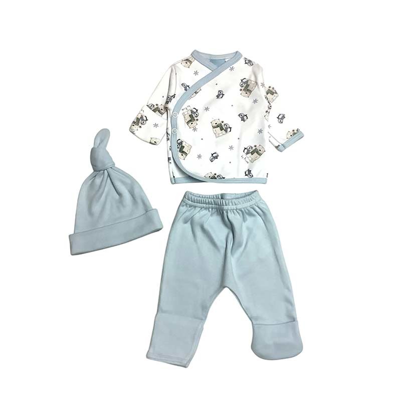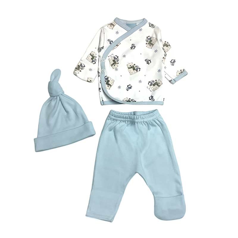 Set x3 piezas algodón oso polar: gorrito, pantalón liso y batita m/l c/broches y guantes opcionales.
