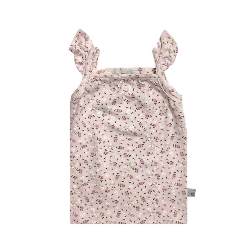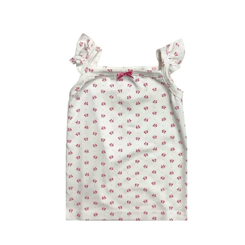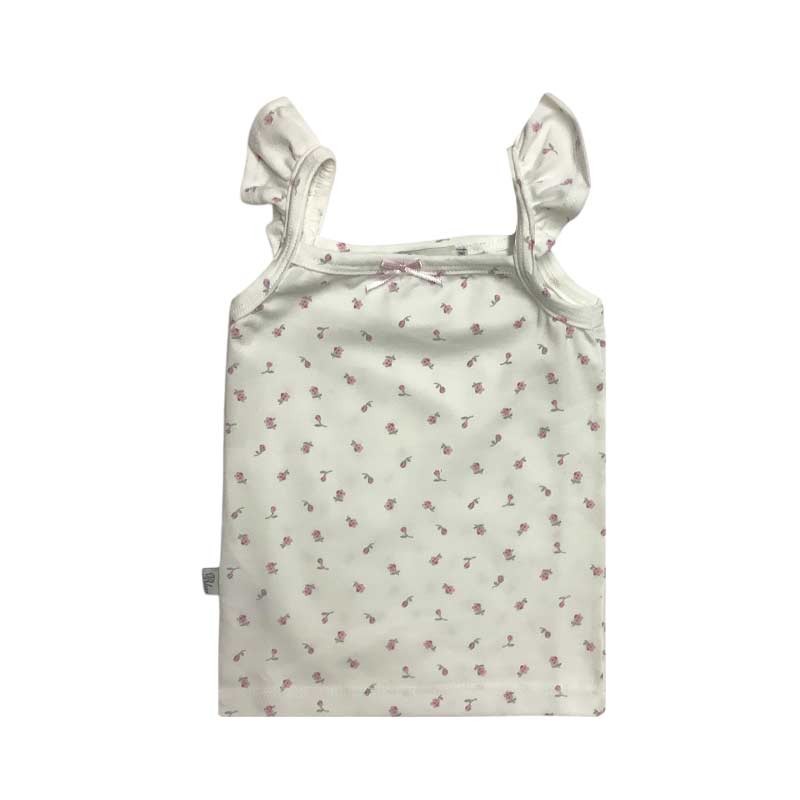 Musculosa beba, tiritas con volados y detalle moñito. ESTAMPADO FLORCITAS