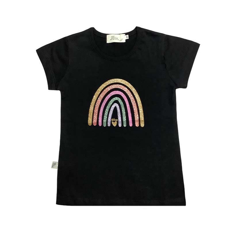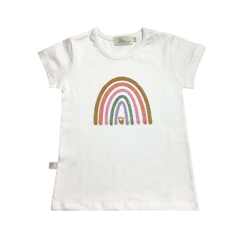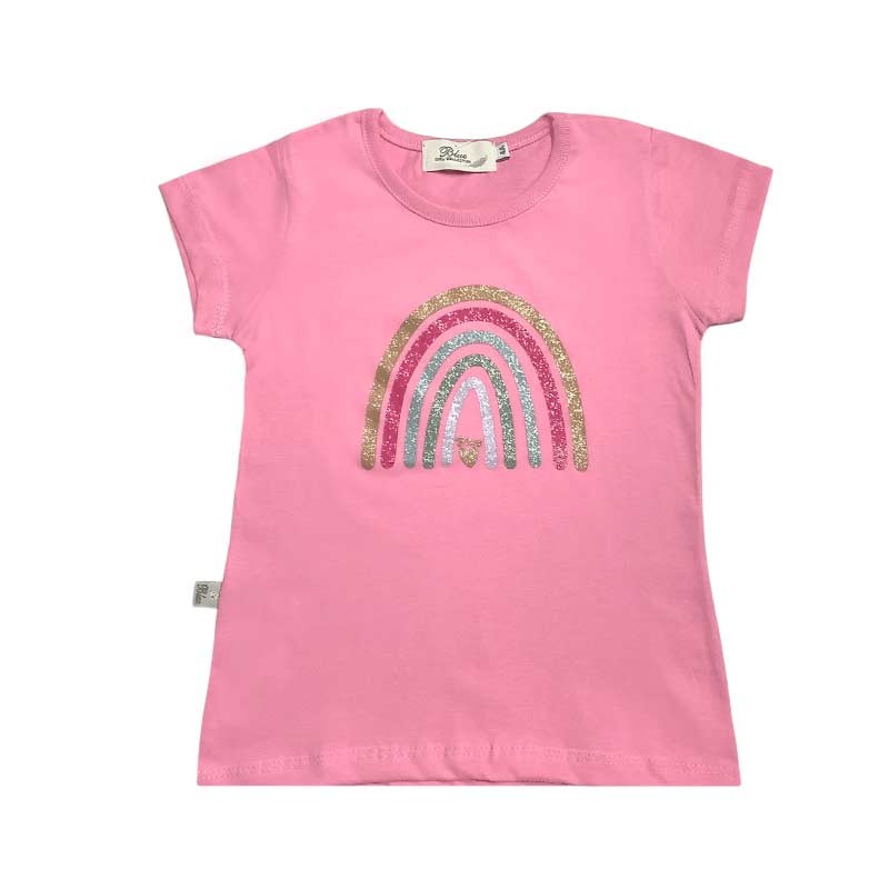 Remera niña algodón m/cortas. ESTAMPA CON GLITTER ARCOIRIS