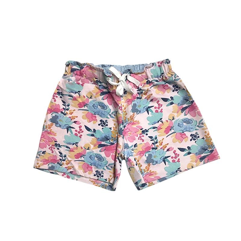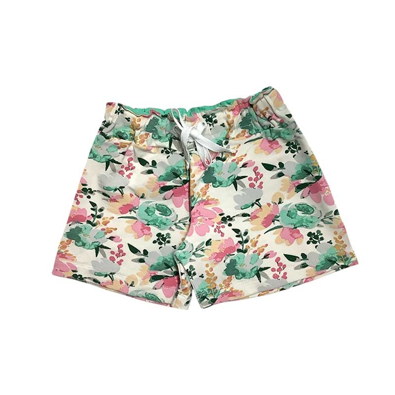 Short niña algodón, cintura c/elástico y cordón ajustable. ESTAMPADO FLORES