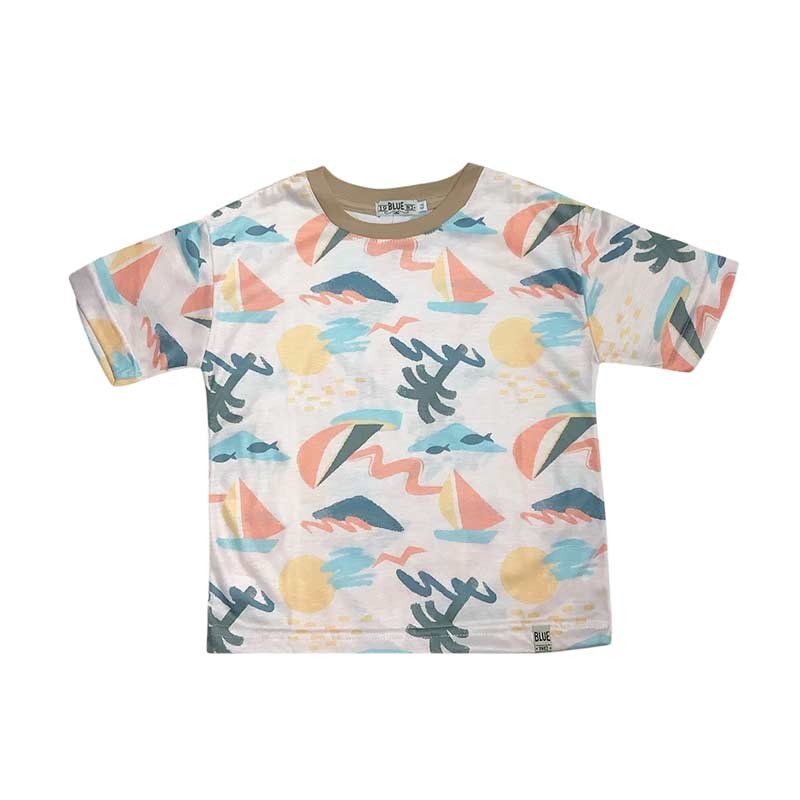 Remera niño algodón m/cortas. ESTAMPADO FULL PLAYA