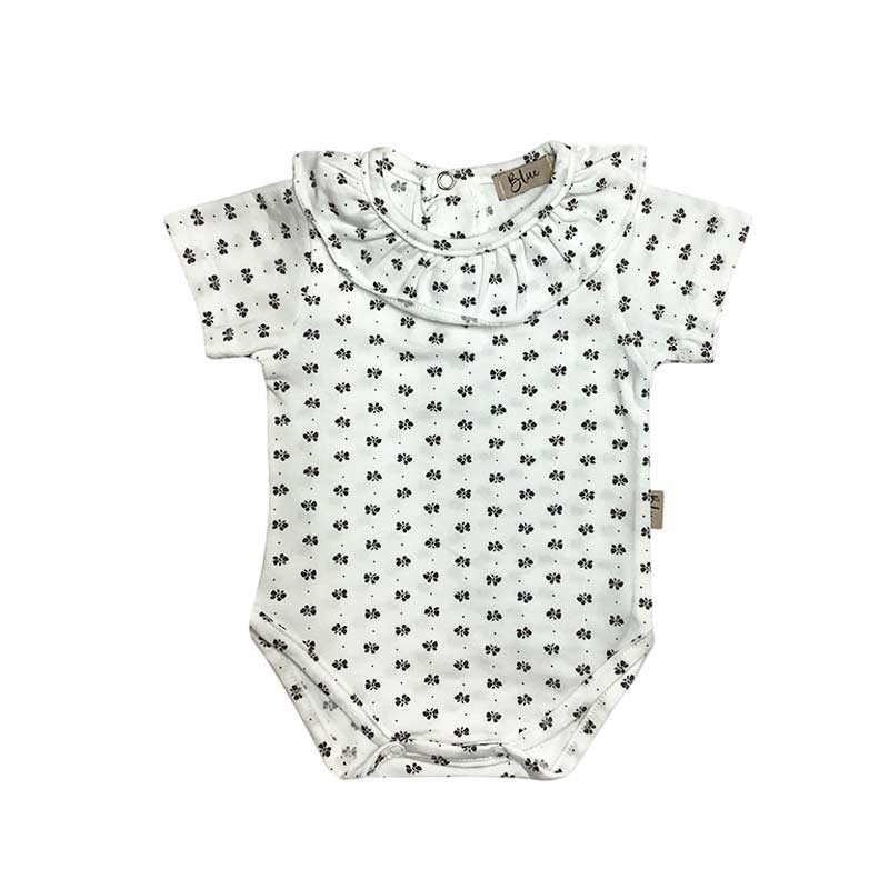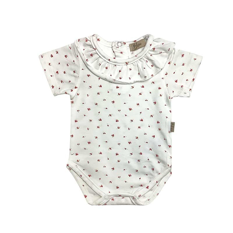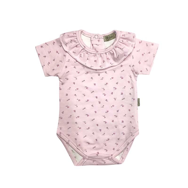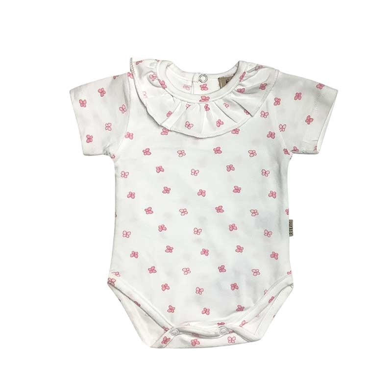 Body beba m/cortas algodon estampado, con voladito en cuello.
