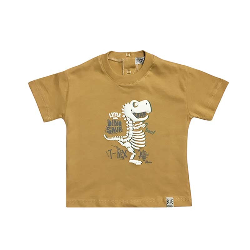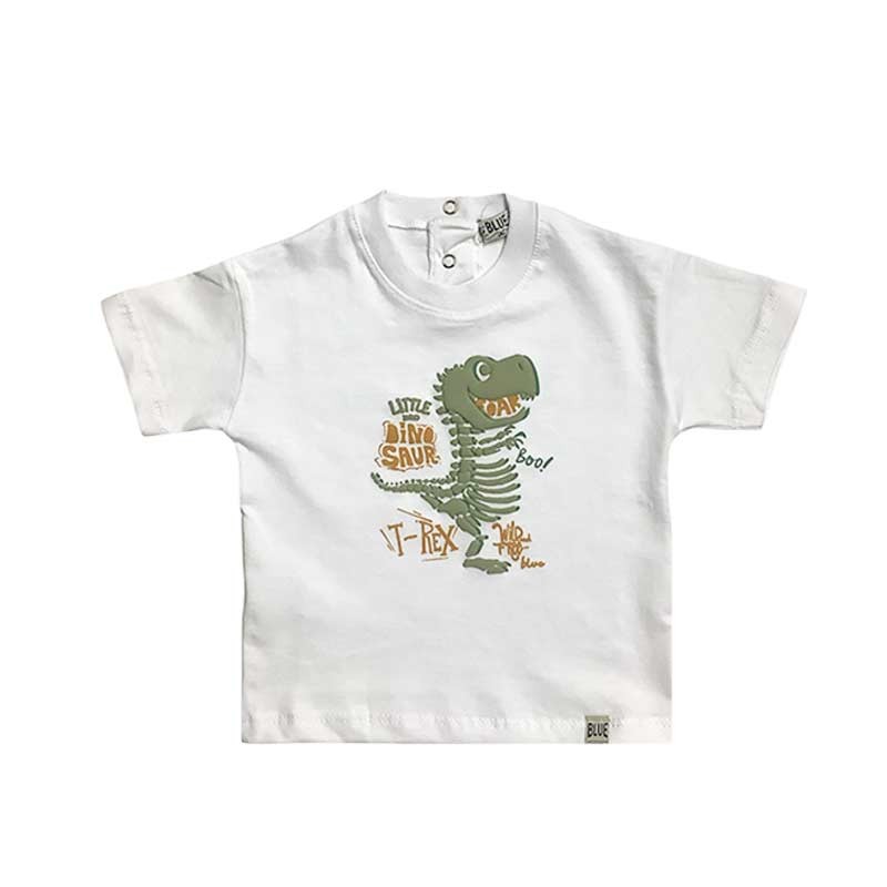 Remera bebé algodón m/cortas, con broches en la espalda. ESTAMPA CON RELIEVE T-REX BOO!