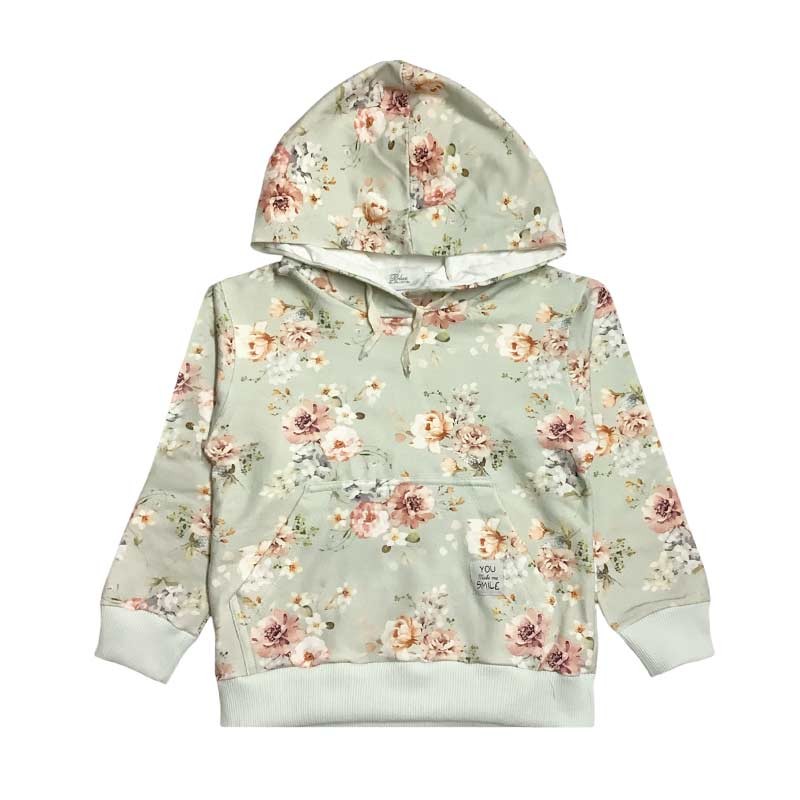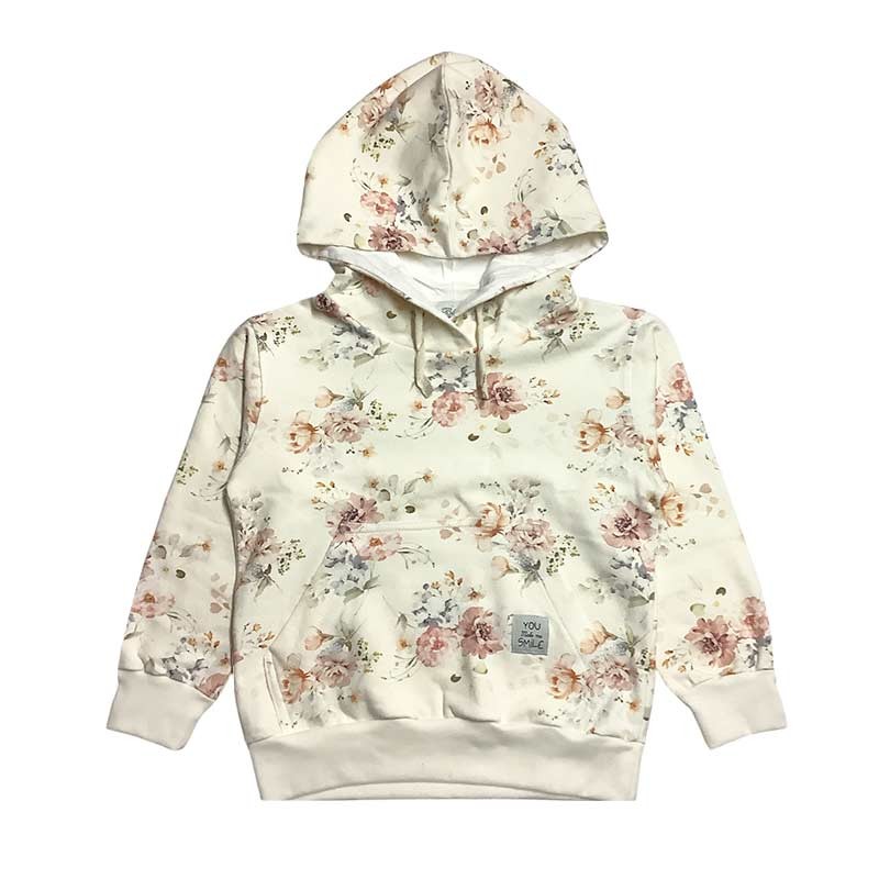 Buzo niña frisa estampado con bolsillo, puños y capucha. ESTAMPADO FLORES