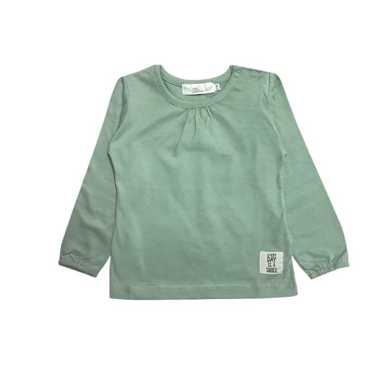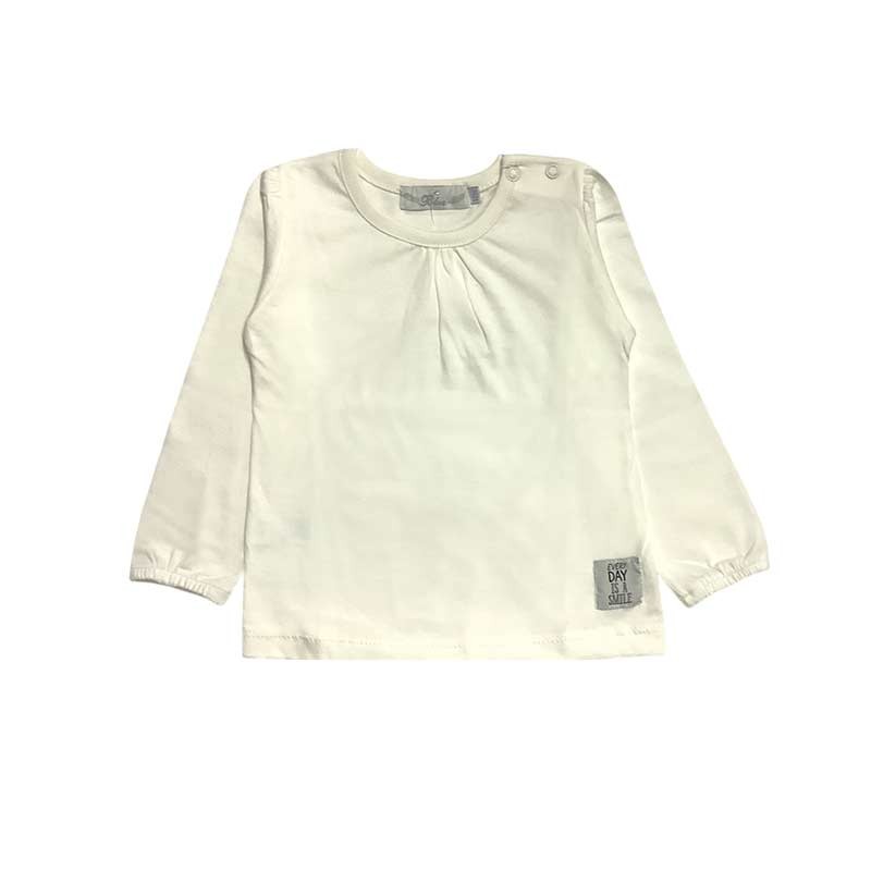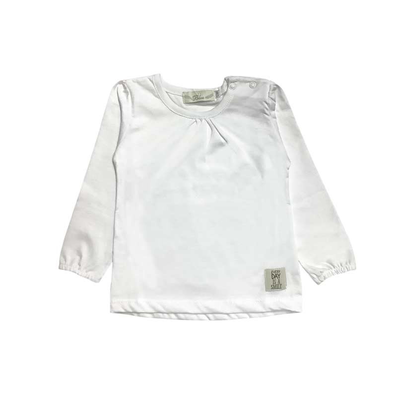 Remera beba algodón m/larga lisa, con cuello fruncido, broches y aplique Blue.