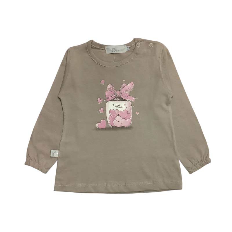 Remera beba m/largas, con broches. ESTAMPA FRASCO DE CORAZONES