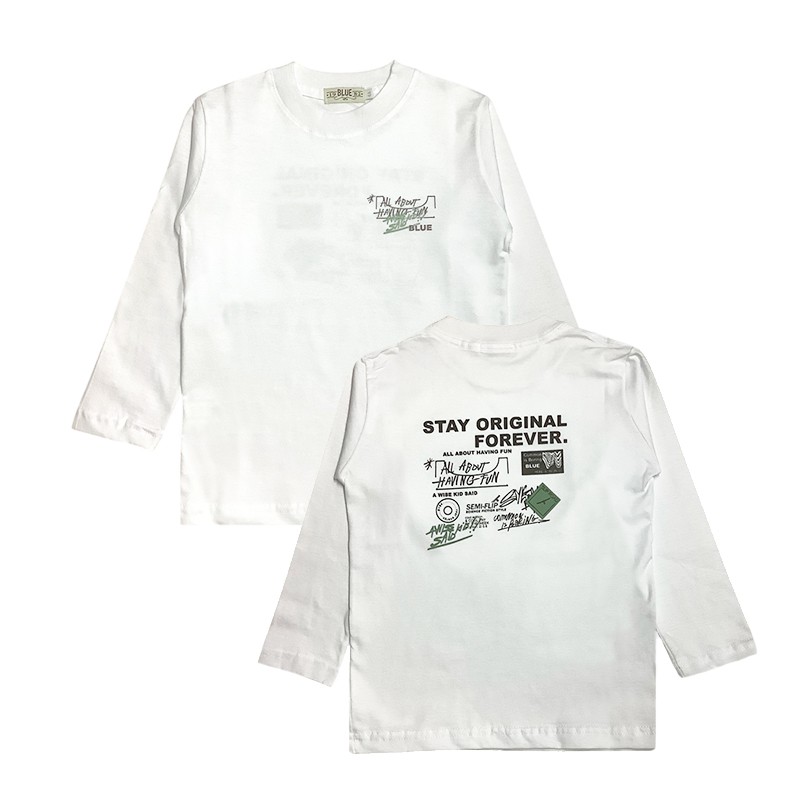 Remera niño m/largas algodón. Doble estampa. ESTAMPA "STAY ORIGINAL FOREVER"