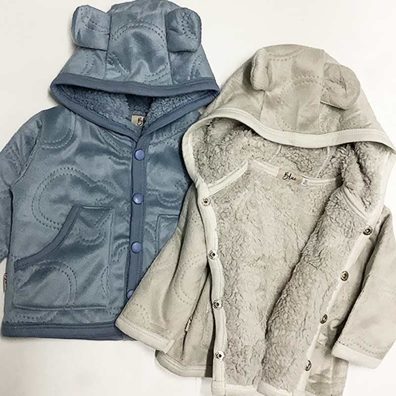 Campera bebé piel Ositos, con bolsillos, broches y capucha con orejitas.