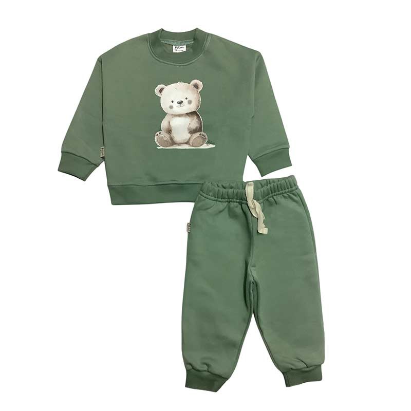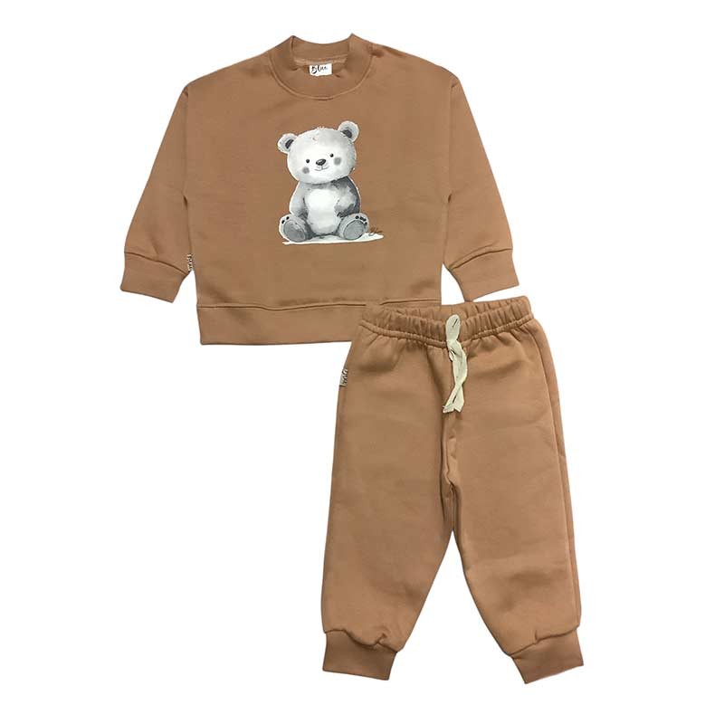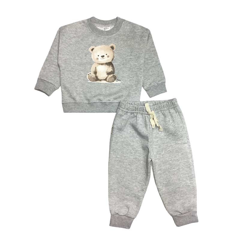 Conjunto bebé/a frisa: buzo c/broches y estampa + pantalón c/puño y cordón liso. ESTAMPA OSITO