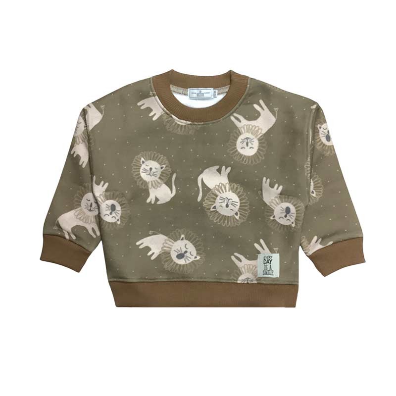 Buzo bebé frisa, con puños y broches. ESTAMPADO LEONES