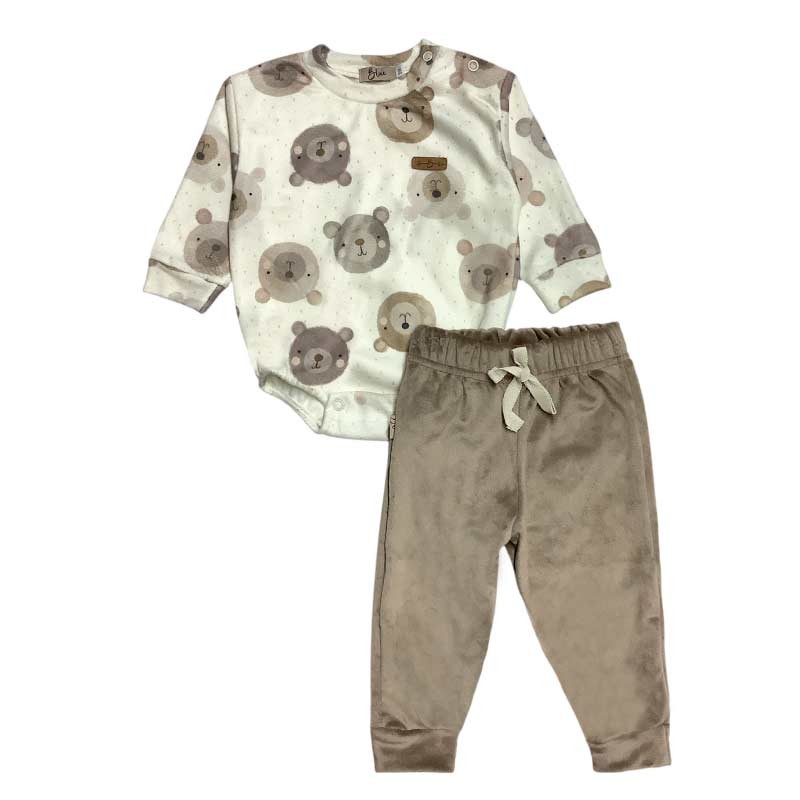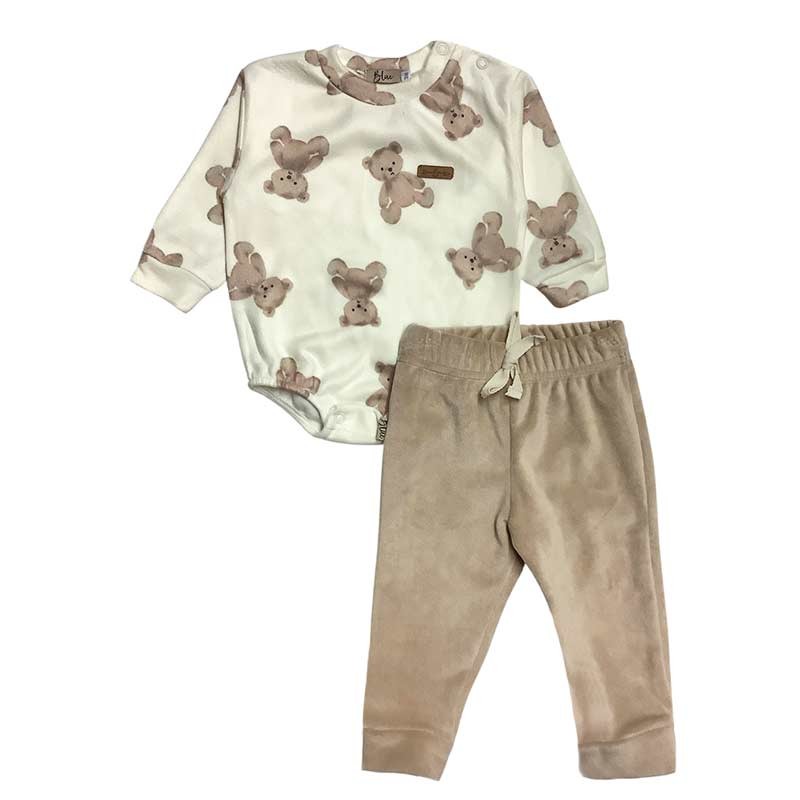 Conjunto bebé/a: body plush estampado m/largas osito + pantalón algodón c/detalle cordón.