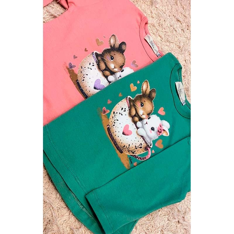 Remera beba m/largas, con broches. ESTAMPA TAZA CONEJOS